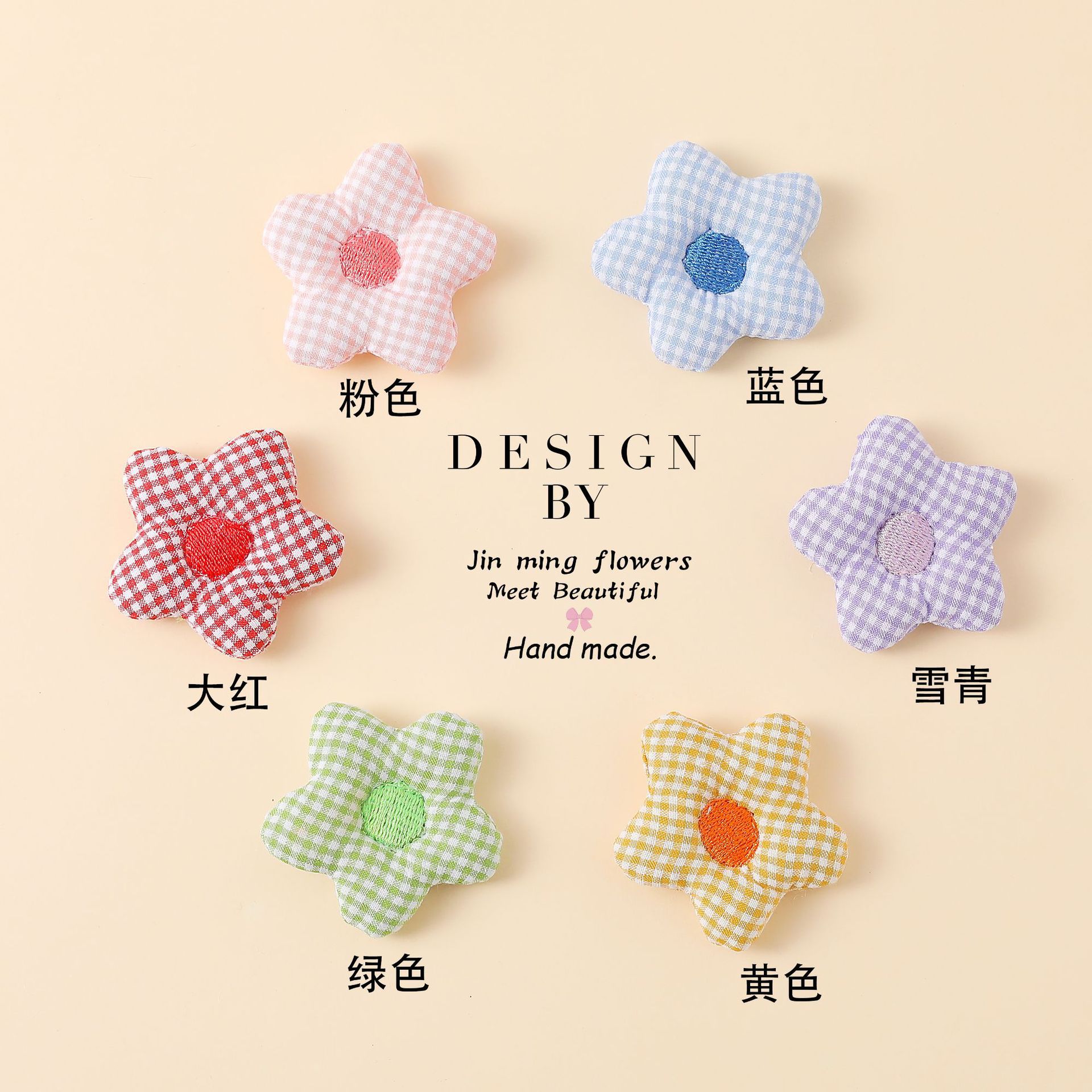 DIY 직물 수제 꽃 액세서리 면 격자 무늬 꽃 액세서리 어린이 옷 헤어 액세서리 자수 코어 5 조각