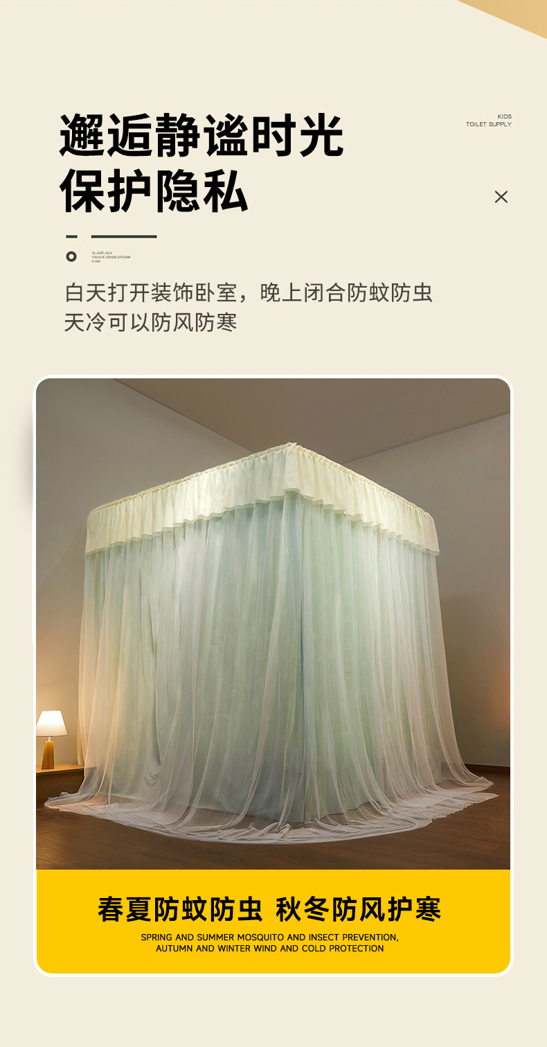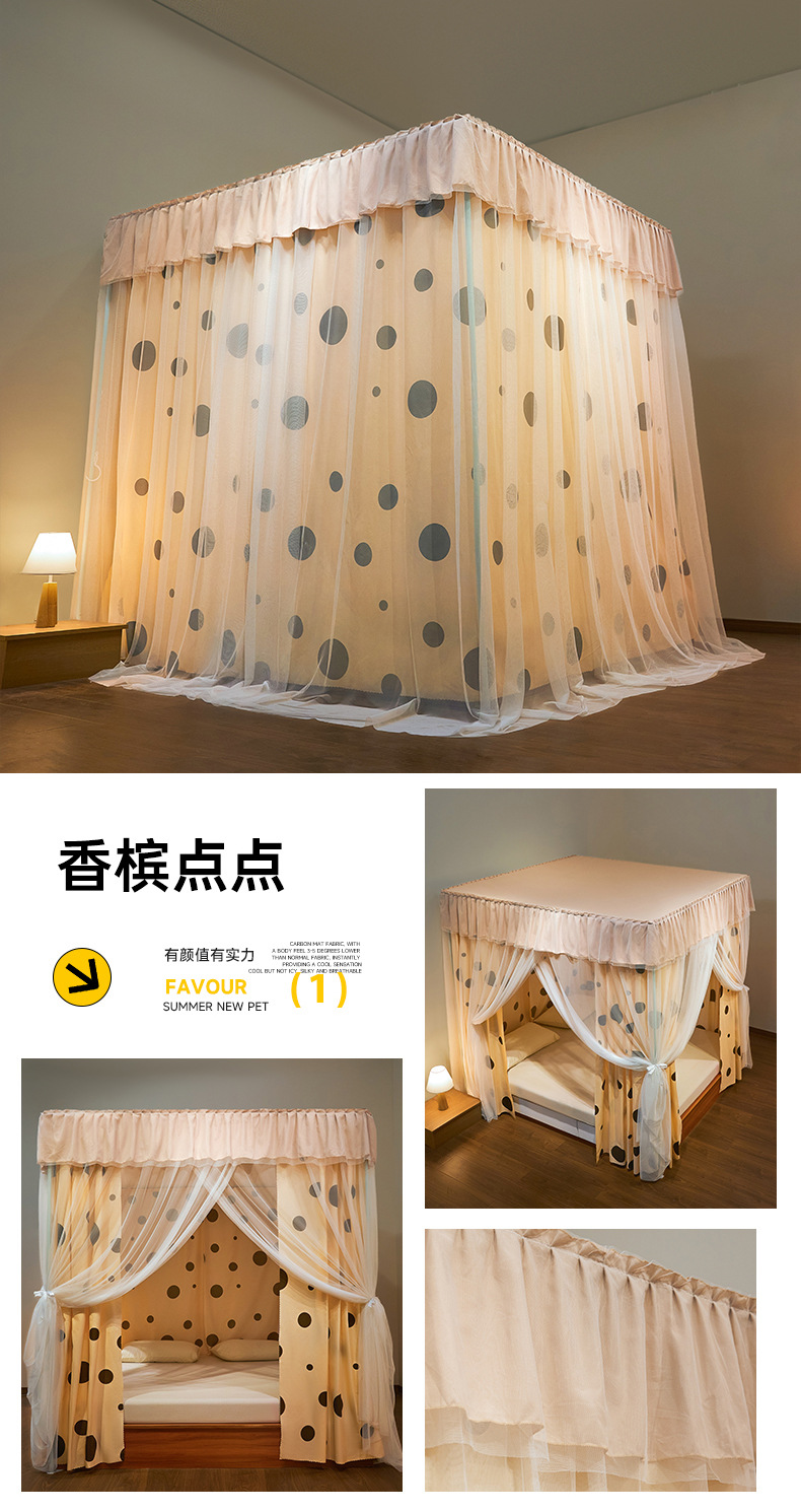 궁전 바닥에 서있는 모기장 홈 안티 모기 음영 커튼 2025 새로운 공주 바람 침대 맨틀 두꺼운 브래킷 방진 텐트스토어 가기