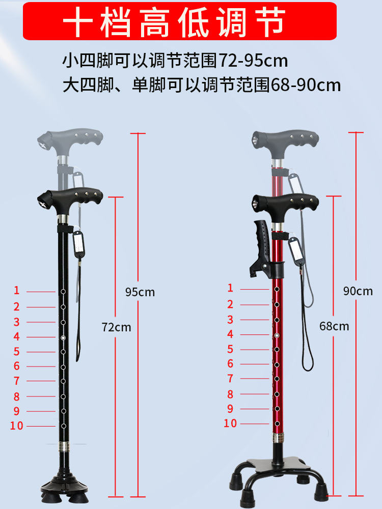 목발 워킹 스틱 네 다리 미끄럼 방지 워킹 스틱 알루미늄 합금 텔레스코픽 라이트 목발을 조명이있는 다기능 목발로 Yong du 조정