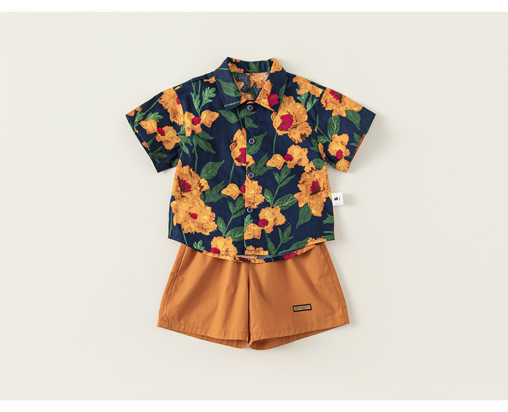 유바오 아동복 소년 여름 착용 세트 2025 새로운 여름 잘 생긴 어린이 휴일 스타일 반팔 셔츠 투피스 세트