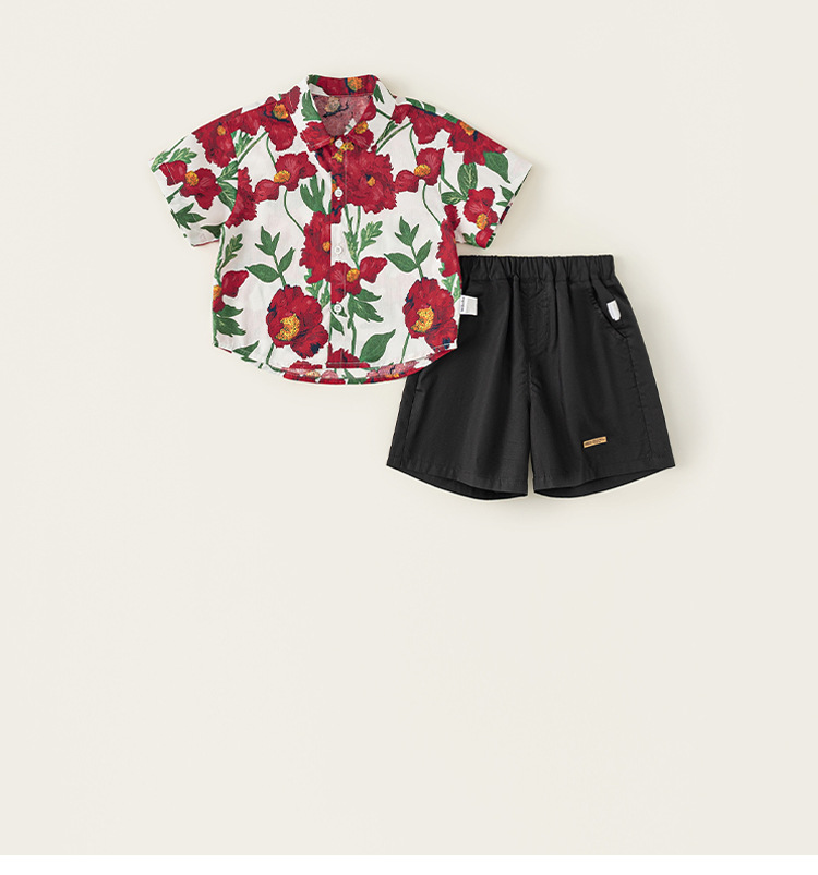 유바오 아동복 소년 여름 착용 세트 2025 새로운 여름 잘 생긴 어린이 휴일 스타일 반팔 셔츠 투피스 세트스토어 가기