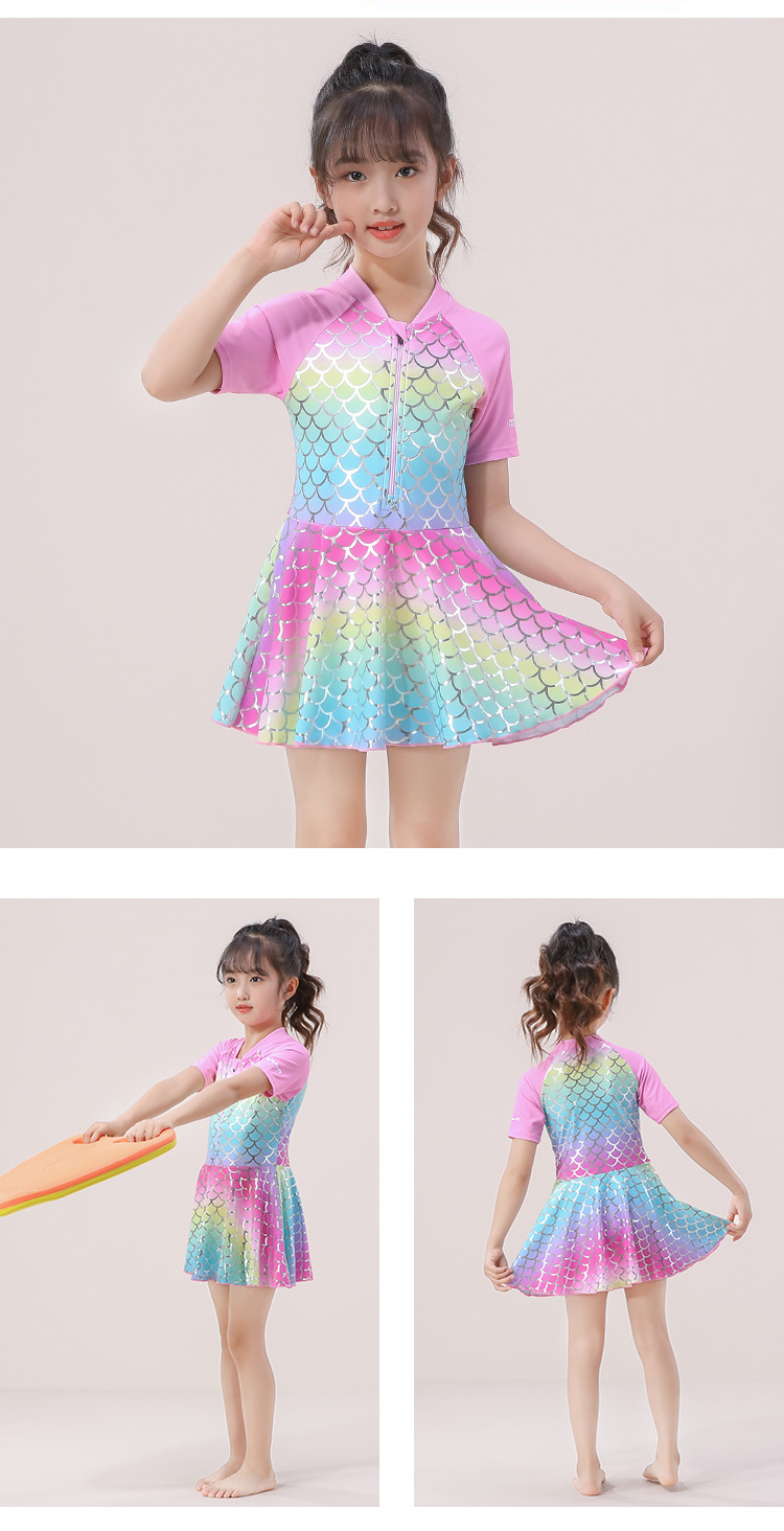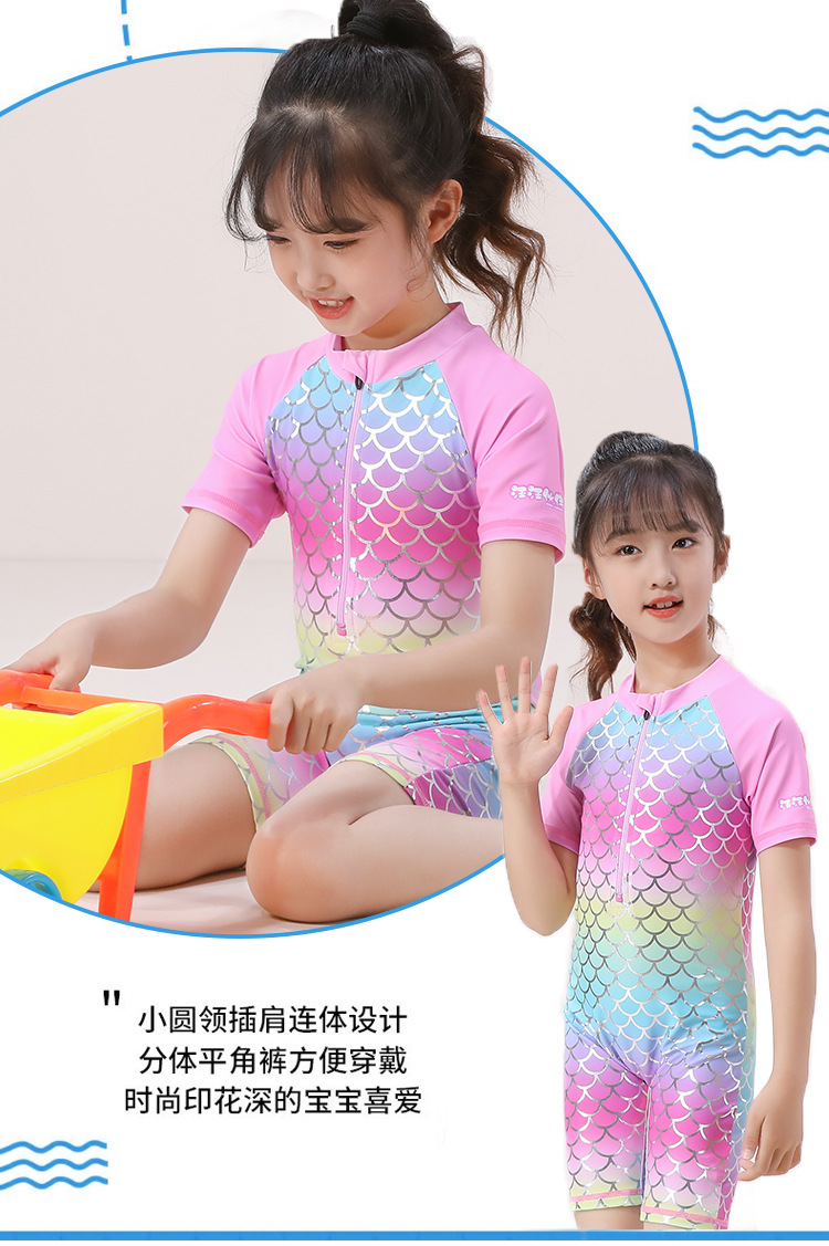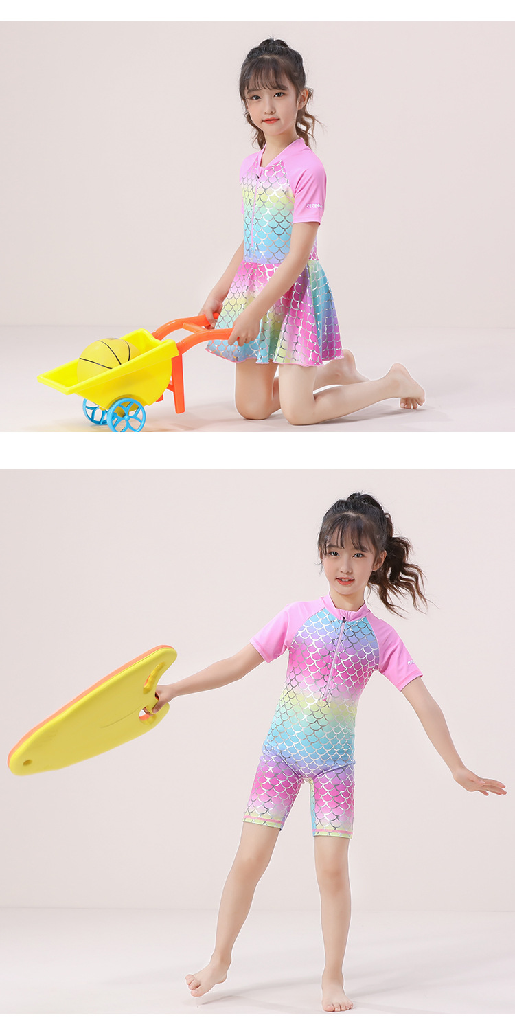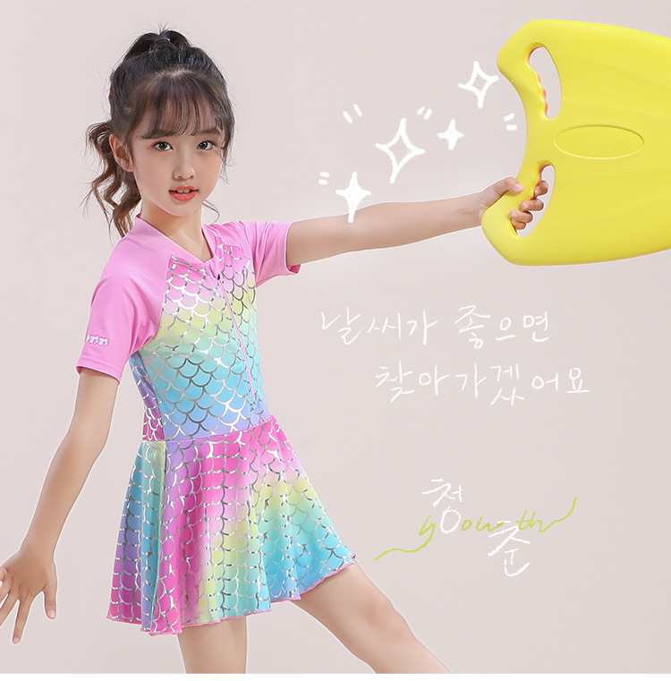 어린이 수영복 여아 원피스 수영복 중대형 아동 긴팔 해변 자외선 차단 인어 수영복 고탄력 편안함스토어 가기