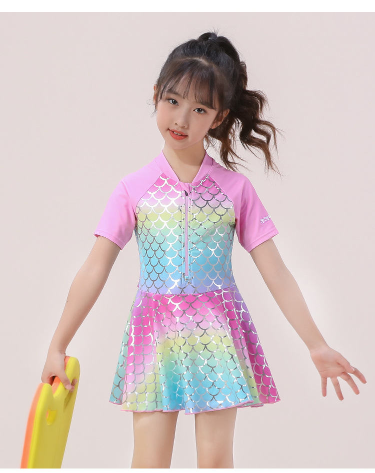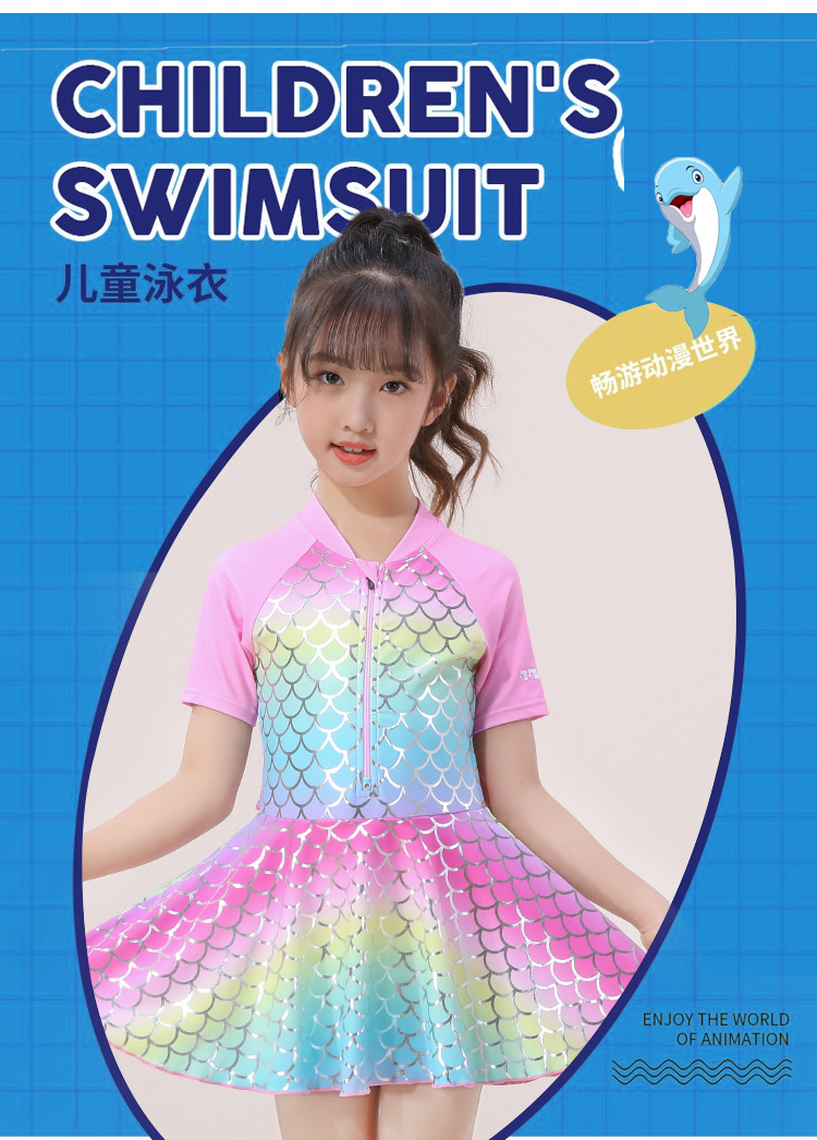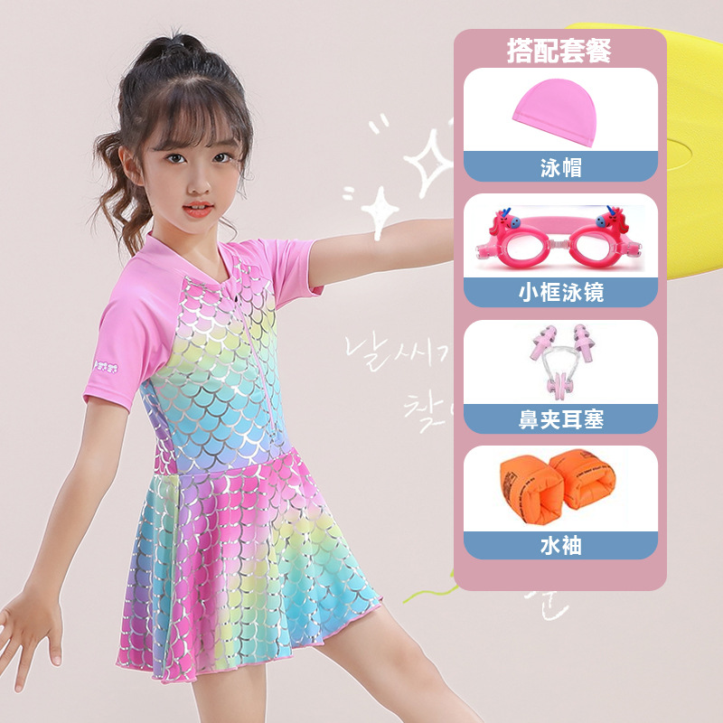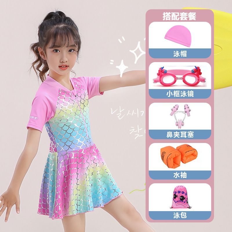 어린이 수영복 여아 원피스 수영복 중대형 아동 긴팔 해변 자외선 차단 인어 수영복 고탄력 편안함