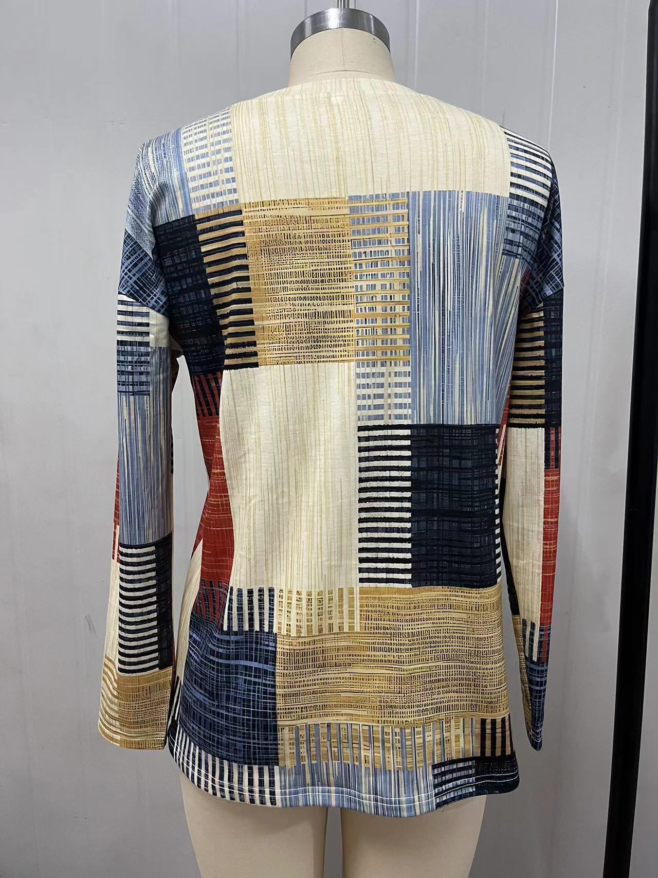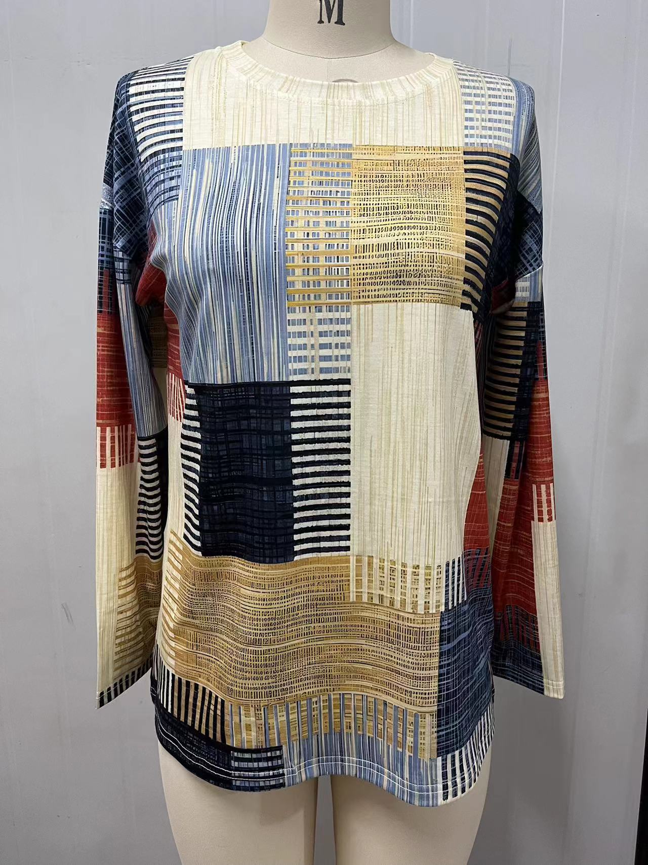 2023 새로운 뜨거운 여성 의류 유럽과 미국 속도 maitong 아마존 컬러 체크 디지털 인쇄 긴 소매 티셔츠 7012