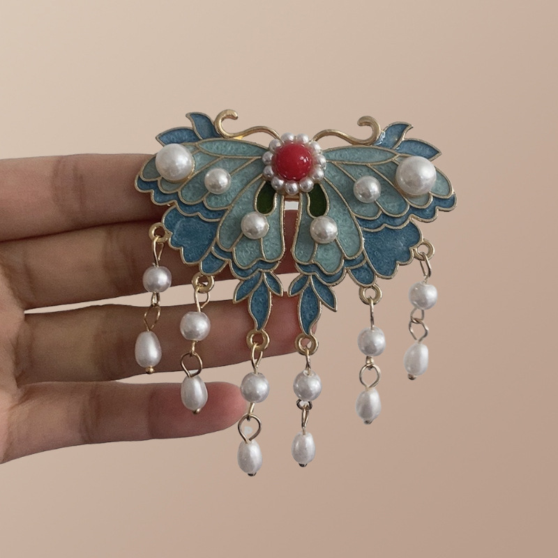 새로운 중국 스타일 나비 블루 술 진주 머리핀 여성 중국 스타일 헤어 액세서리 여성 헤어핀 사이드 클립 한후 헤드폰스토어 가기