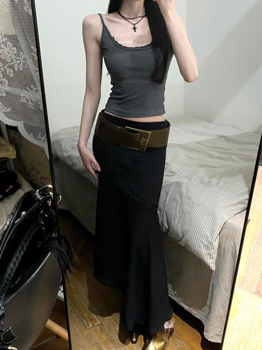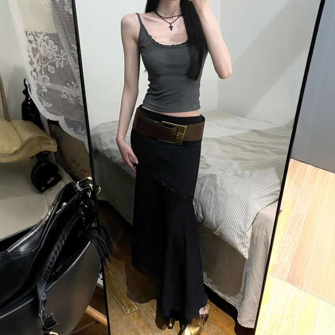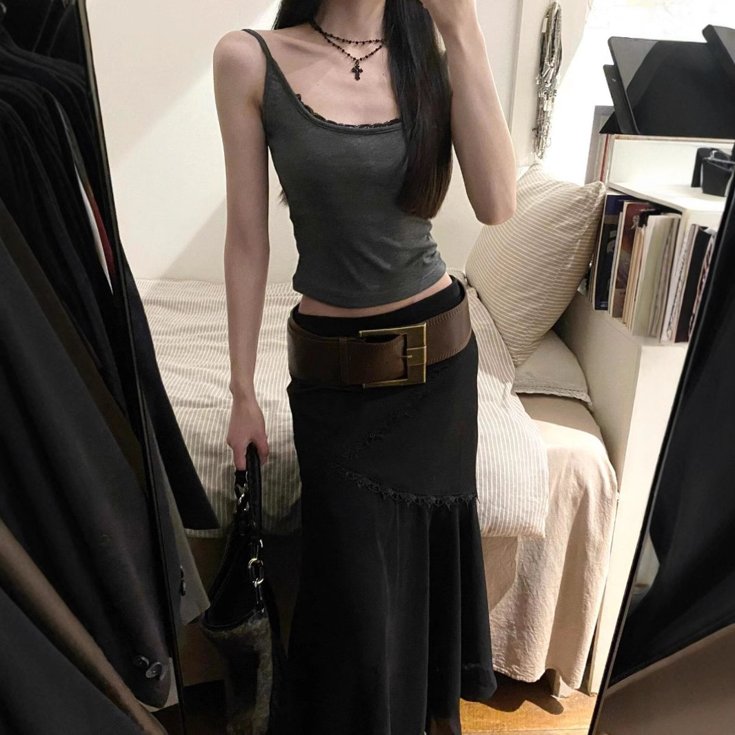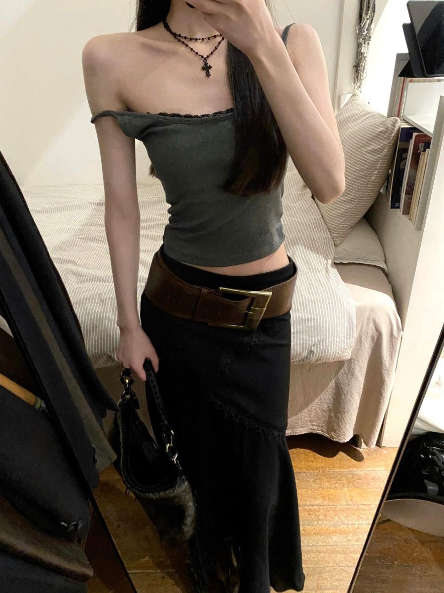 순수한 스파이스 소녀 그레이 레이스 바느질 카미솔 여성의 여름 2025 새로운 내외형 짧은 탑