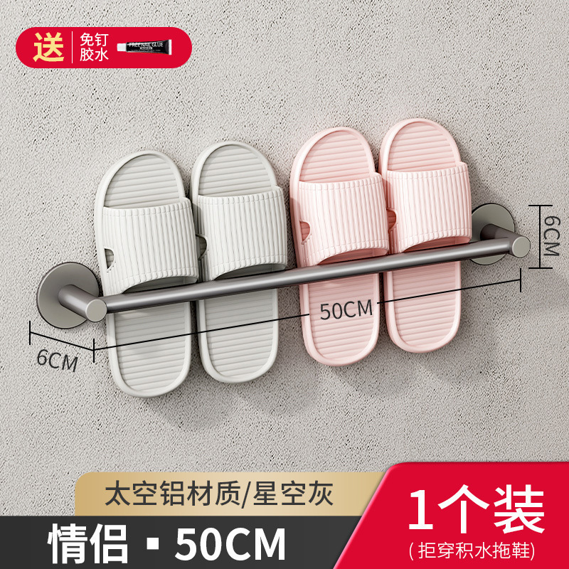 枪灰浴室拖鞋架壁挂免打孔卫生间置物架厕所鞋子收纳神器沥水架子