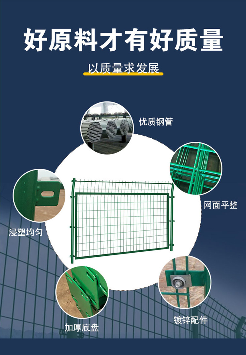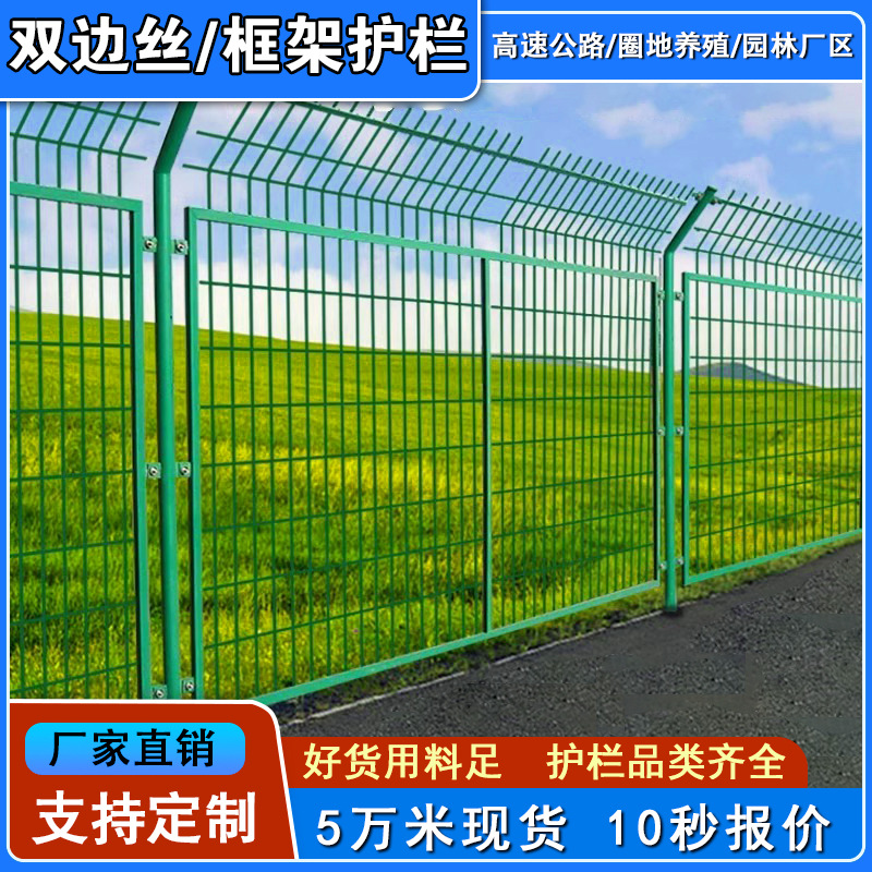 양측 와이어 프레임 가드레일 네트 고속도로 철도 광전지 양식 울타리 네트 복숭아 모양의 기둥 열 아연 도금 보호 네트
