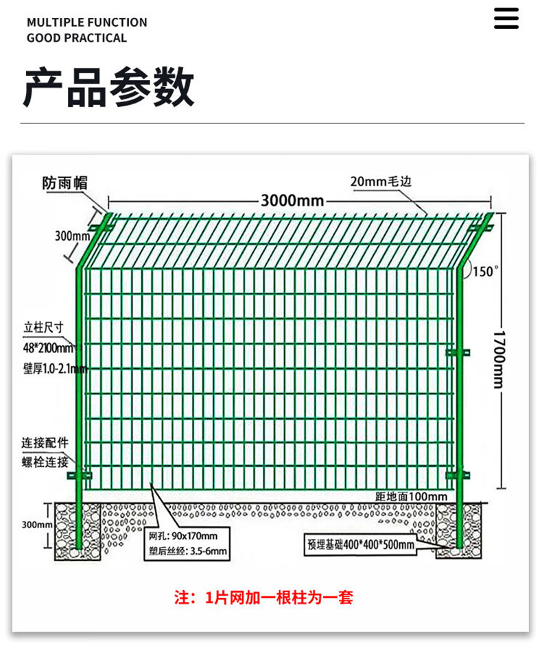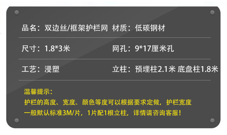 • 높이 1.8x 3m 너비 와이어 두께 4.5mm 하드 플라스틱 모델(기둥 확장 나사 포함)