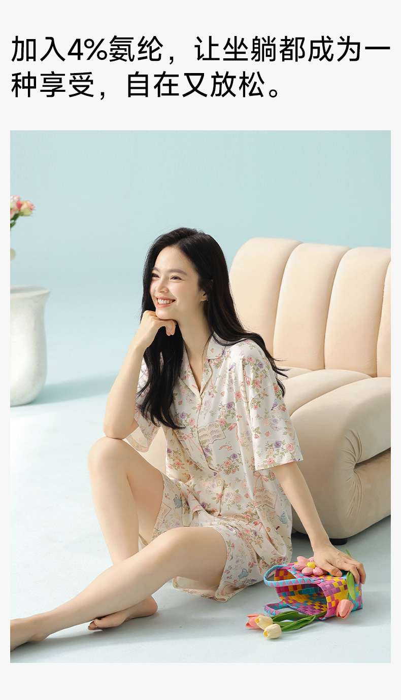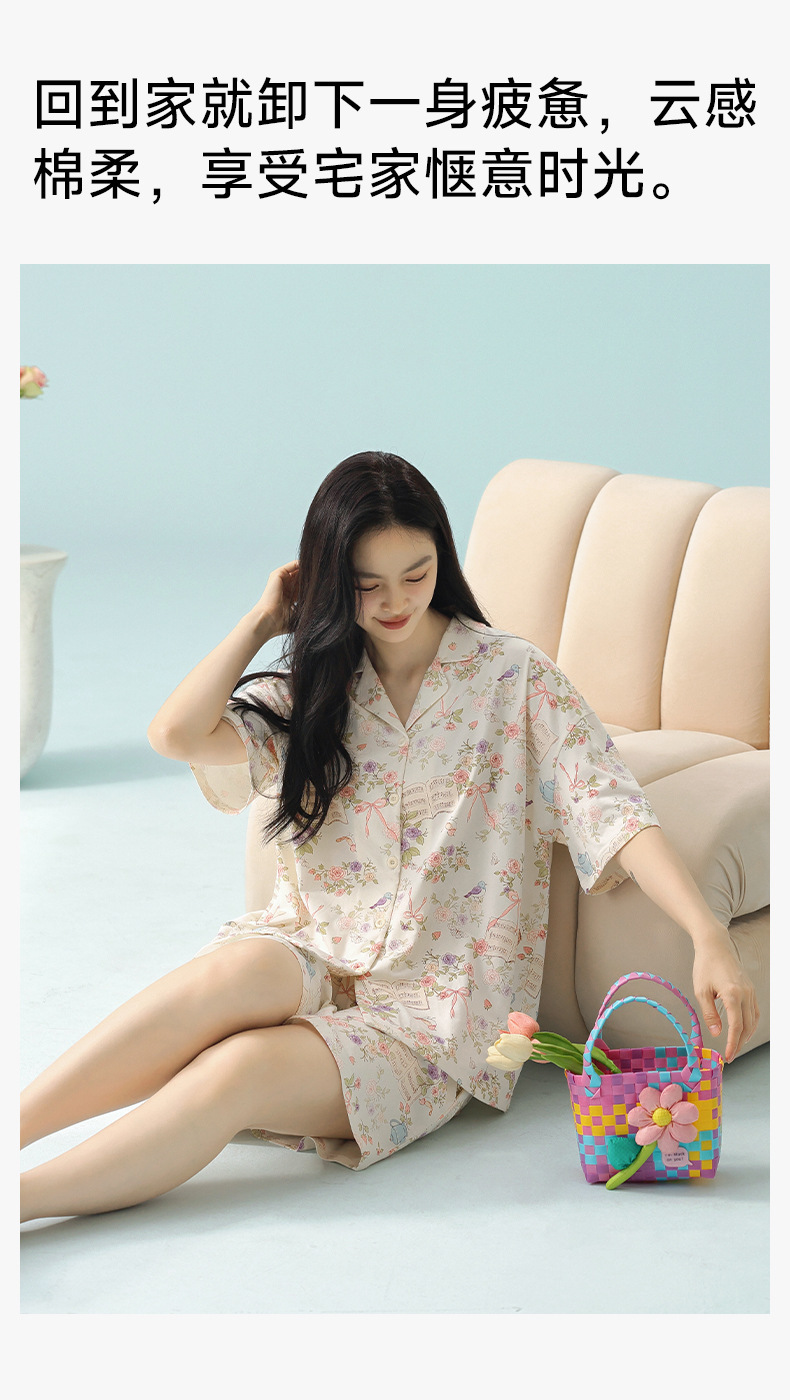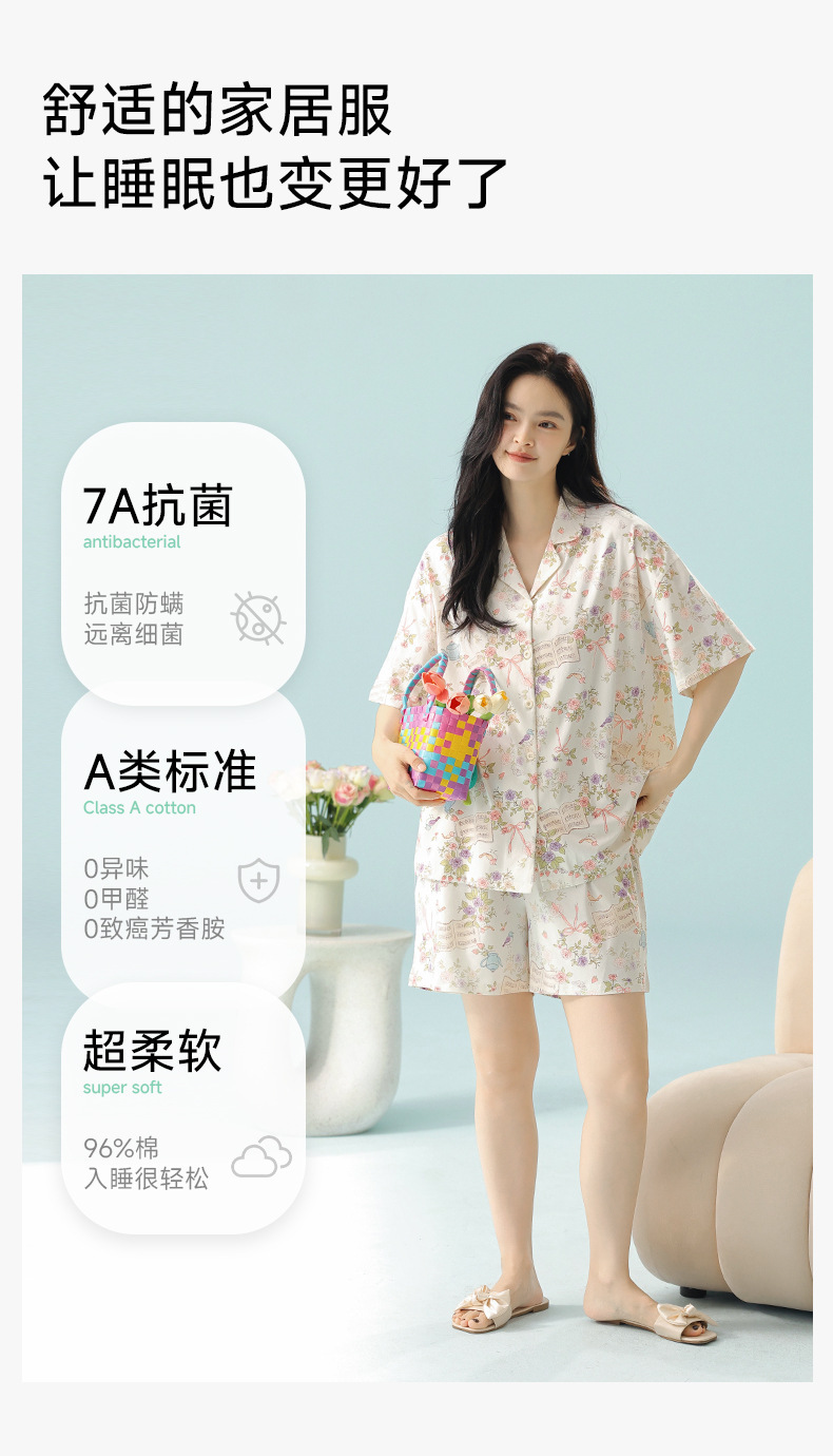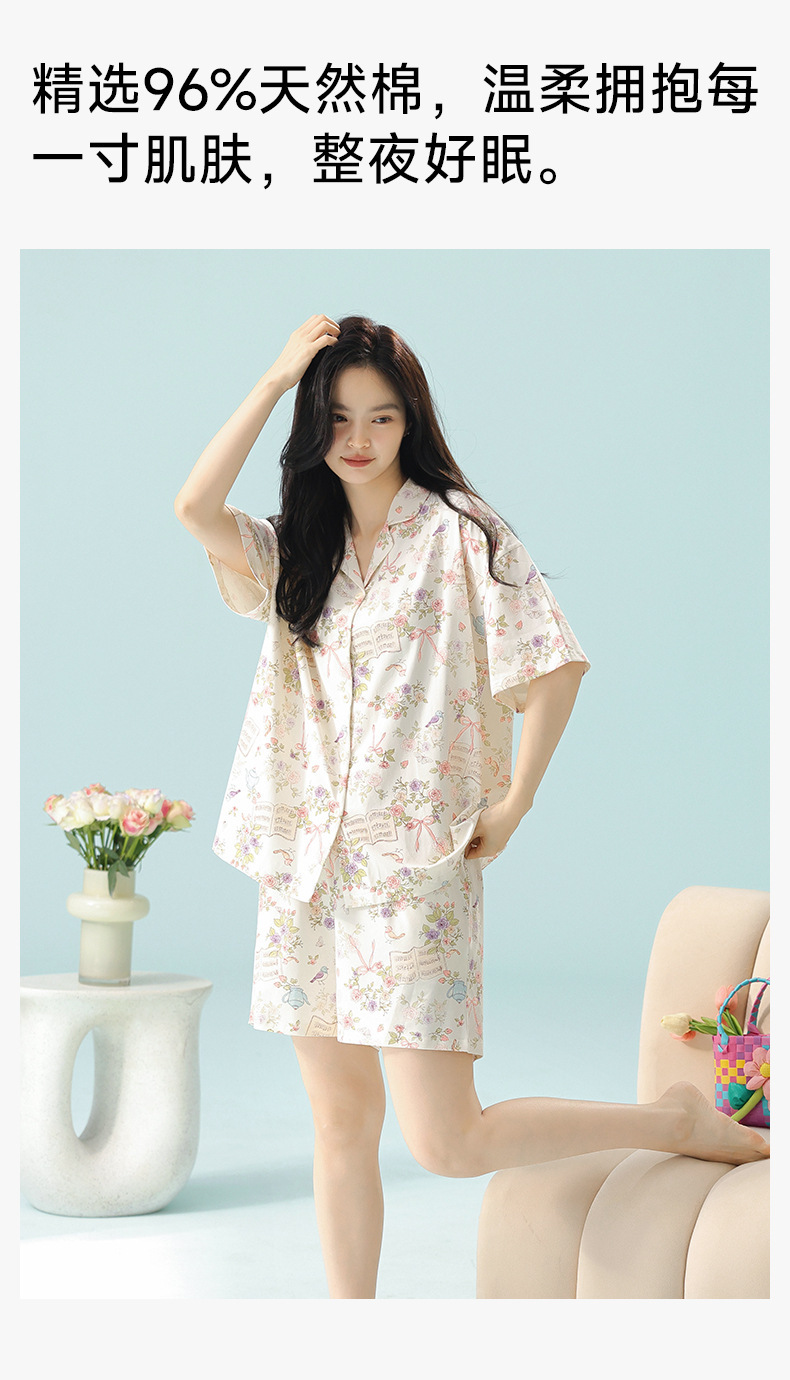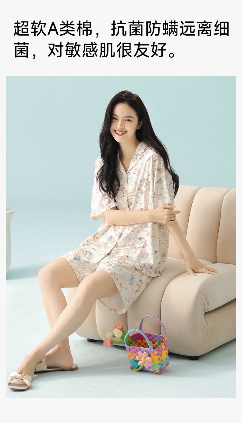 [일러스트 레이터 협력] 클래스 A 랙 코튼 여름 잠옷 여성 여름 반소매 코튼 카툰 홈 의류 세트스토어 가기