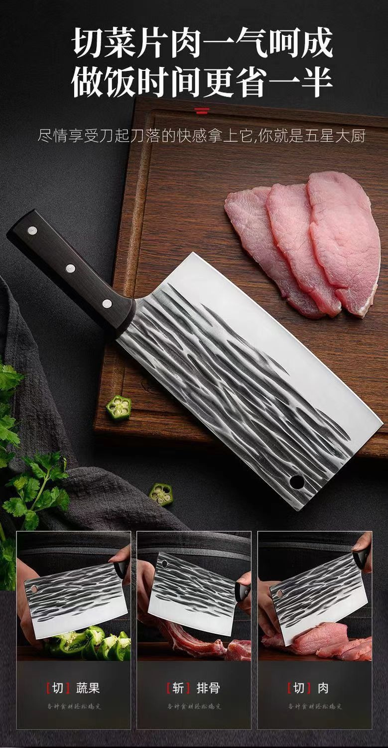 네트 레드 단조 주방 칼 흔들어 음성 빠른 손 라이브 폭발 주방 칼 도마 뼈와 고기 절단 모조 나무 손잡이 요리사 칼