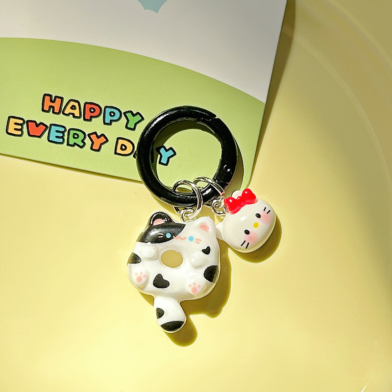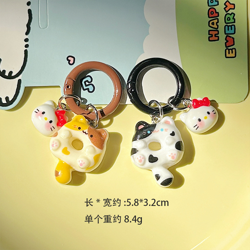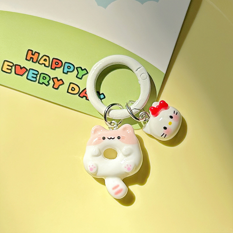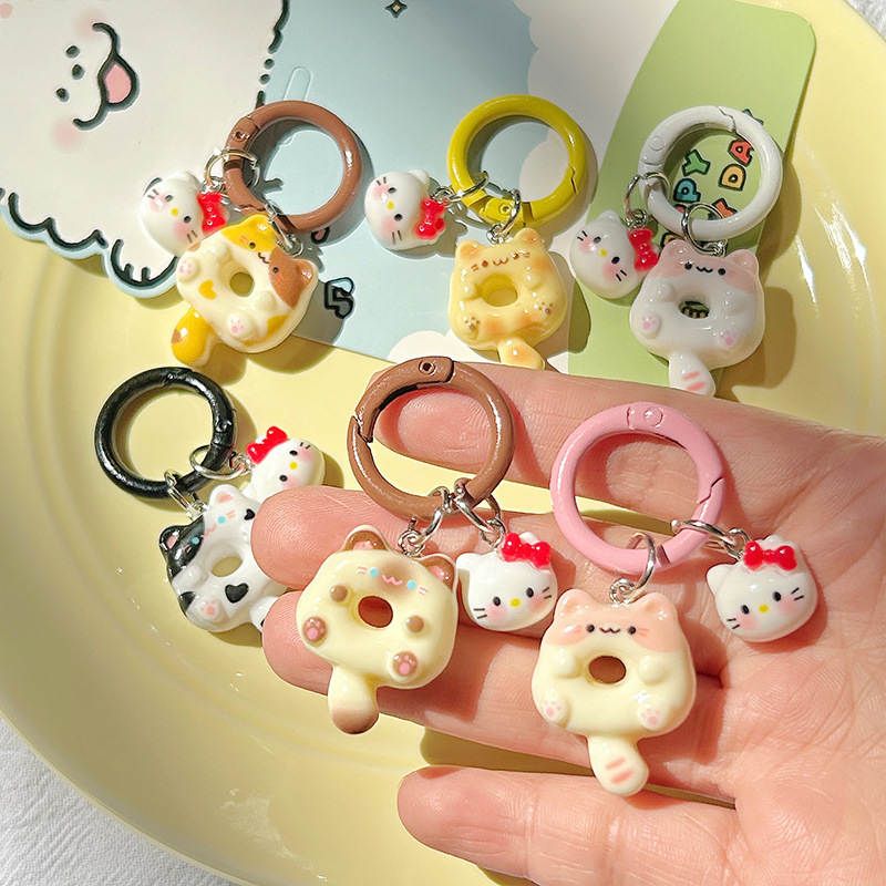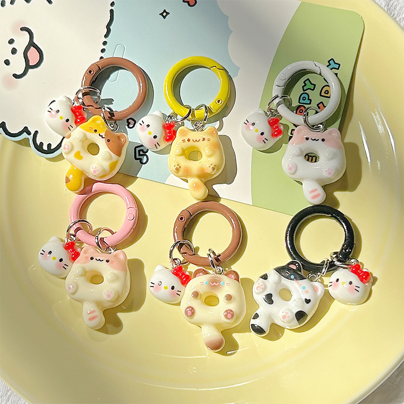 귀여운 만화 도넛 고양이 열쇠 고리 샴 고양이 깡통 바람 키 체인 학교 가방 헤드셋 펜던트 달콤한스토어 가기