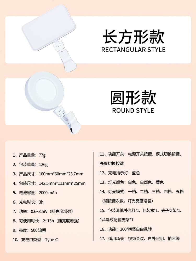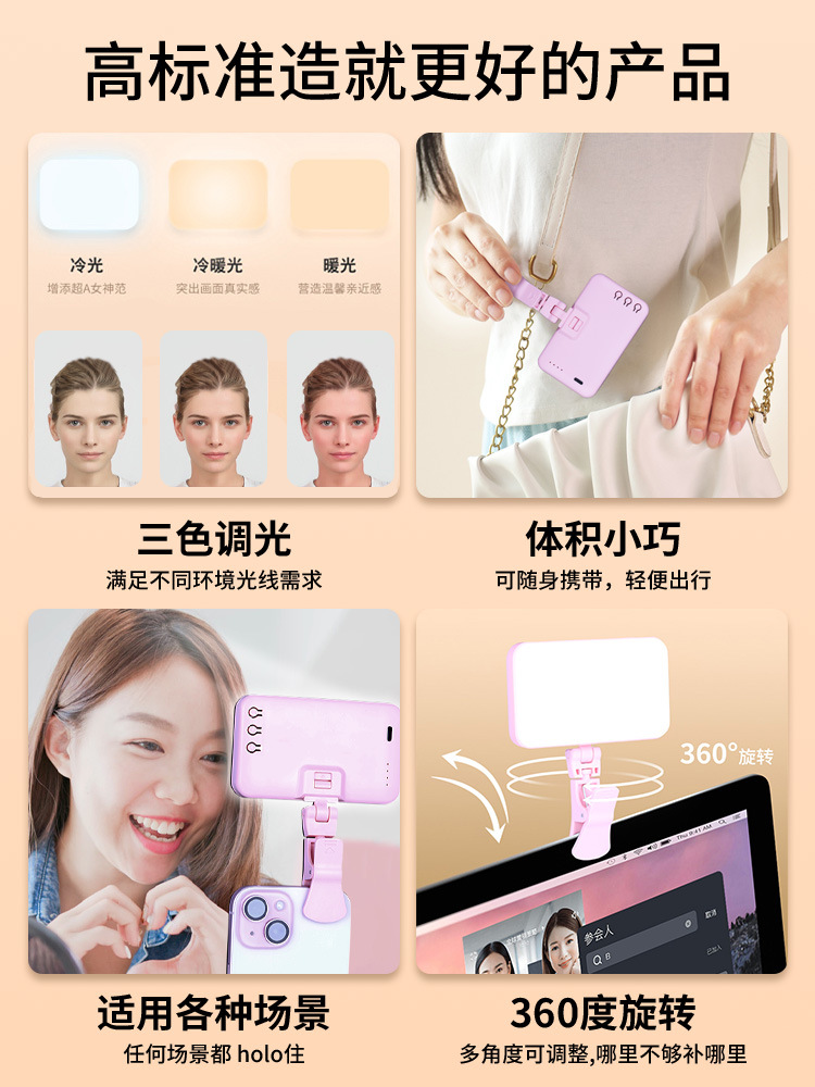 휴대폰 보조 조명 충전식 촬영 조명 조절 가능한 라이브 방송 LED 셀카 조명 뷰티 촬영 조명 삼색 온도 조절스토어 가기