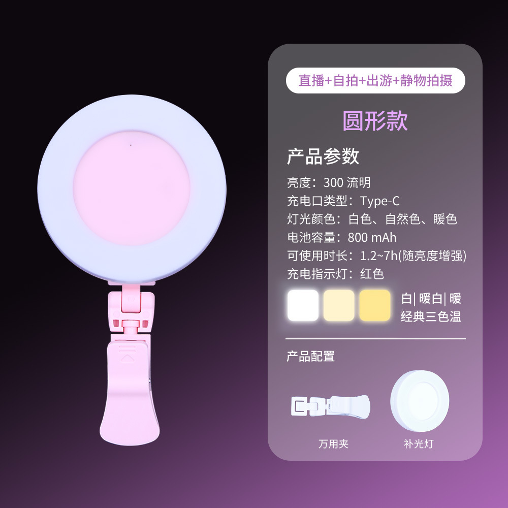휴대폰 보조 조명 충전식 촬영 조명 조절 가능한 라이브 방송 LED 셀카 조명 뷰티 촬영 조명 삼색 온도 조절