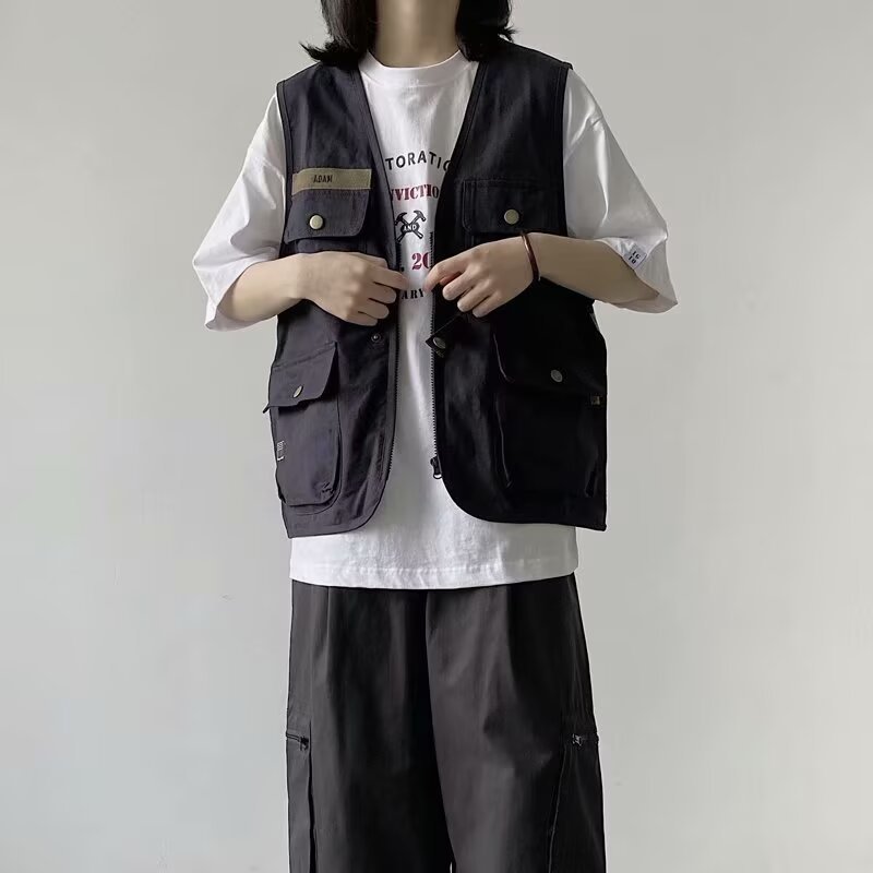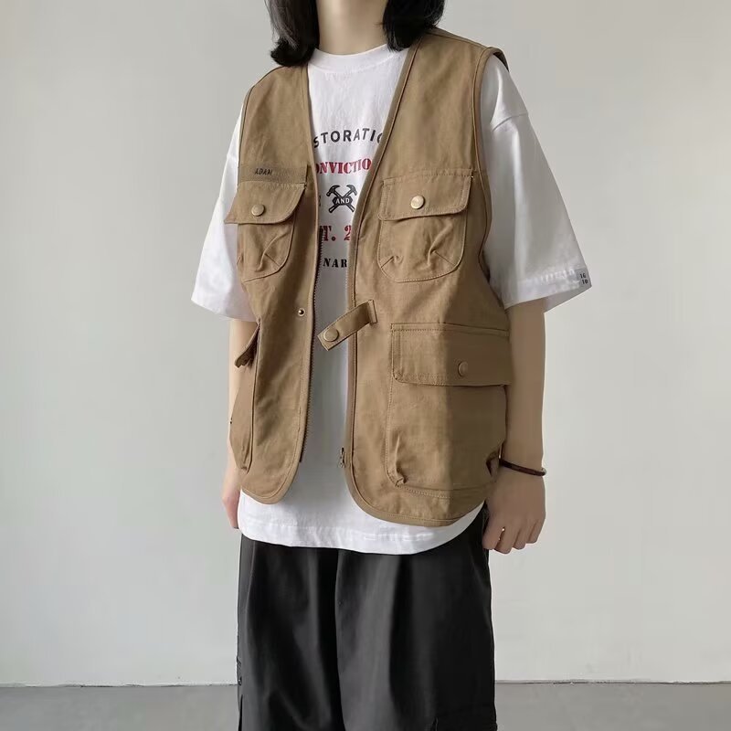 여름 작업복 조끼 남녀 트렌디 브랜드 멀티 포켓 일본식 하라주쿠 기능성 느슨한 민소매 남성용스토어 가기