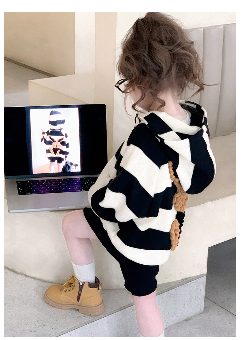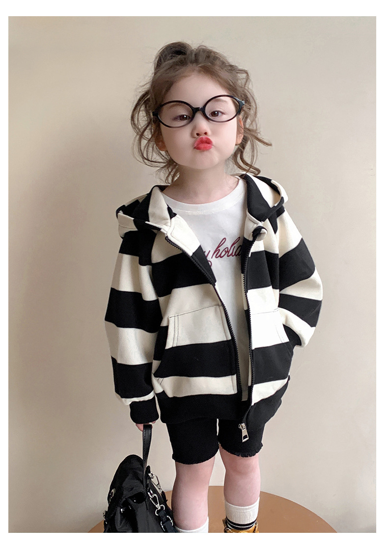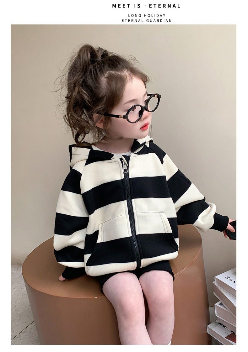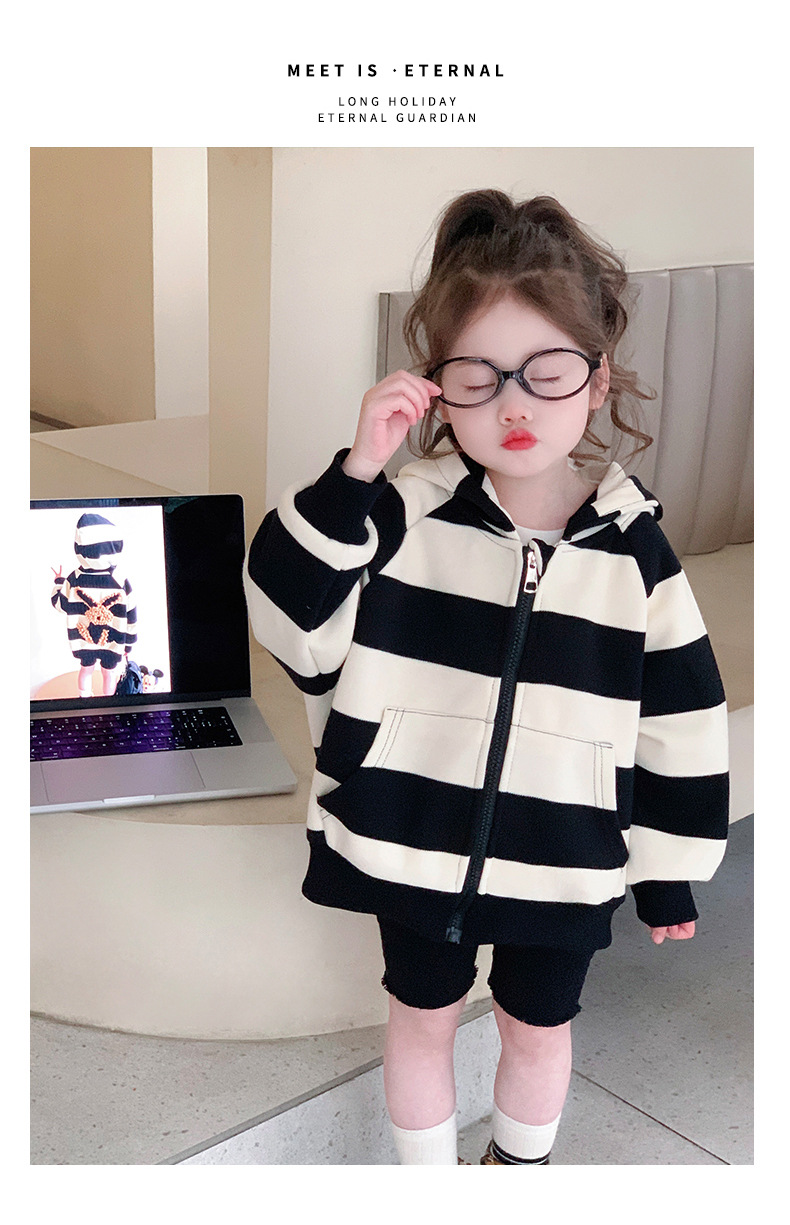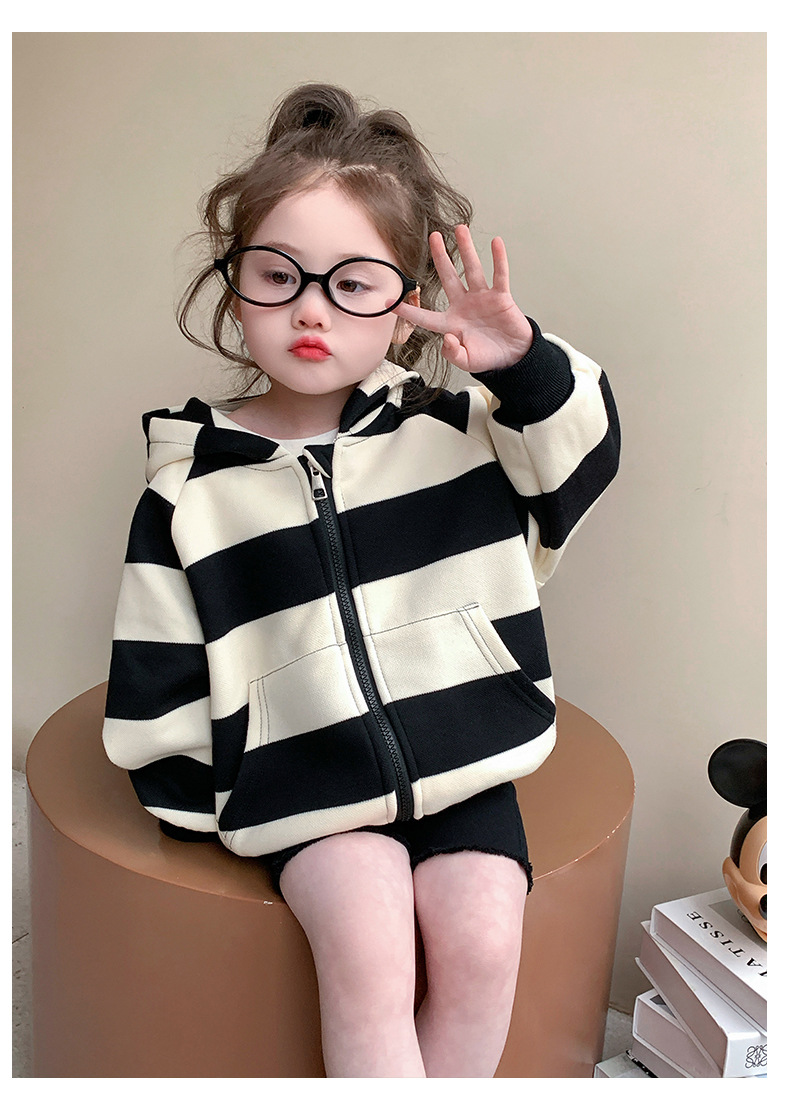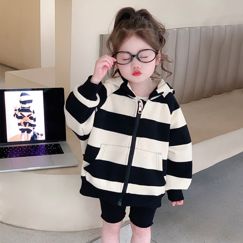 소녀 코트 봄과 가을 2025 새로운 스타일 서양식 봄 착용 어린이 캐주얼 줄무늬 카디건 아기의 봄 탑스토어 가기