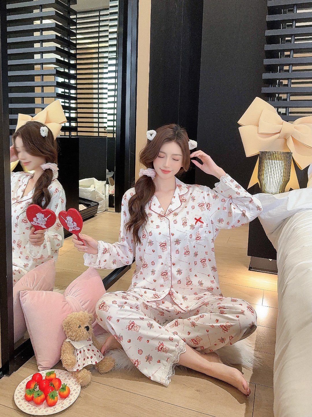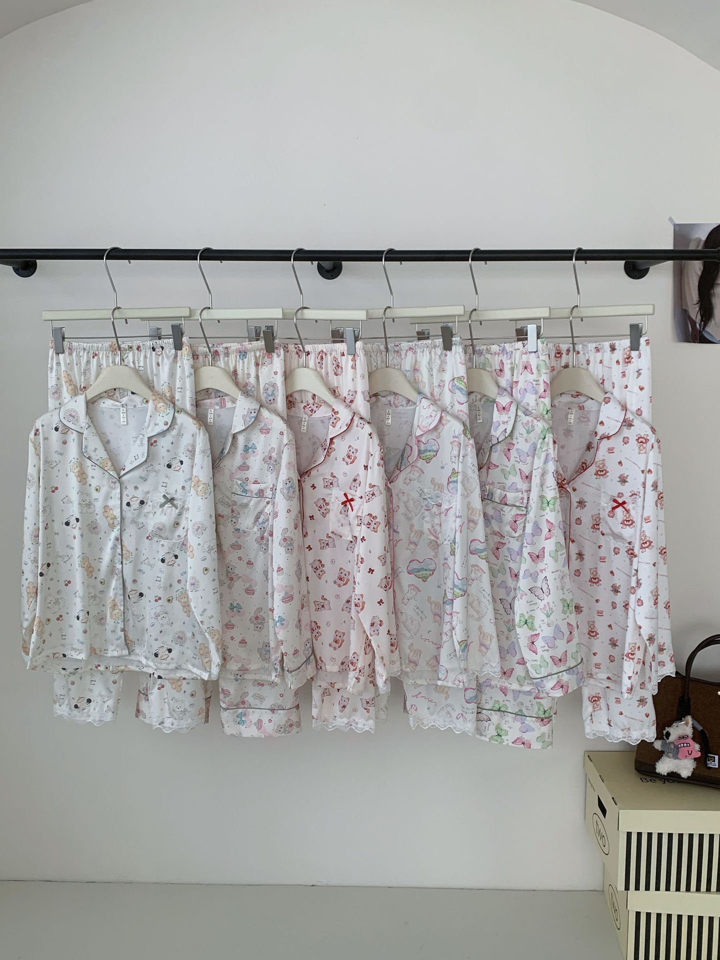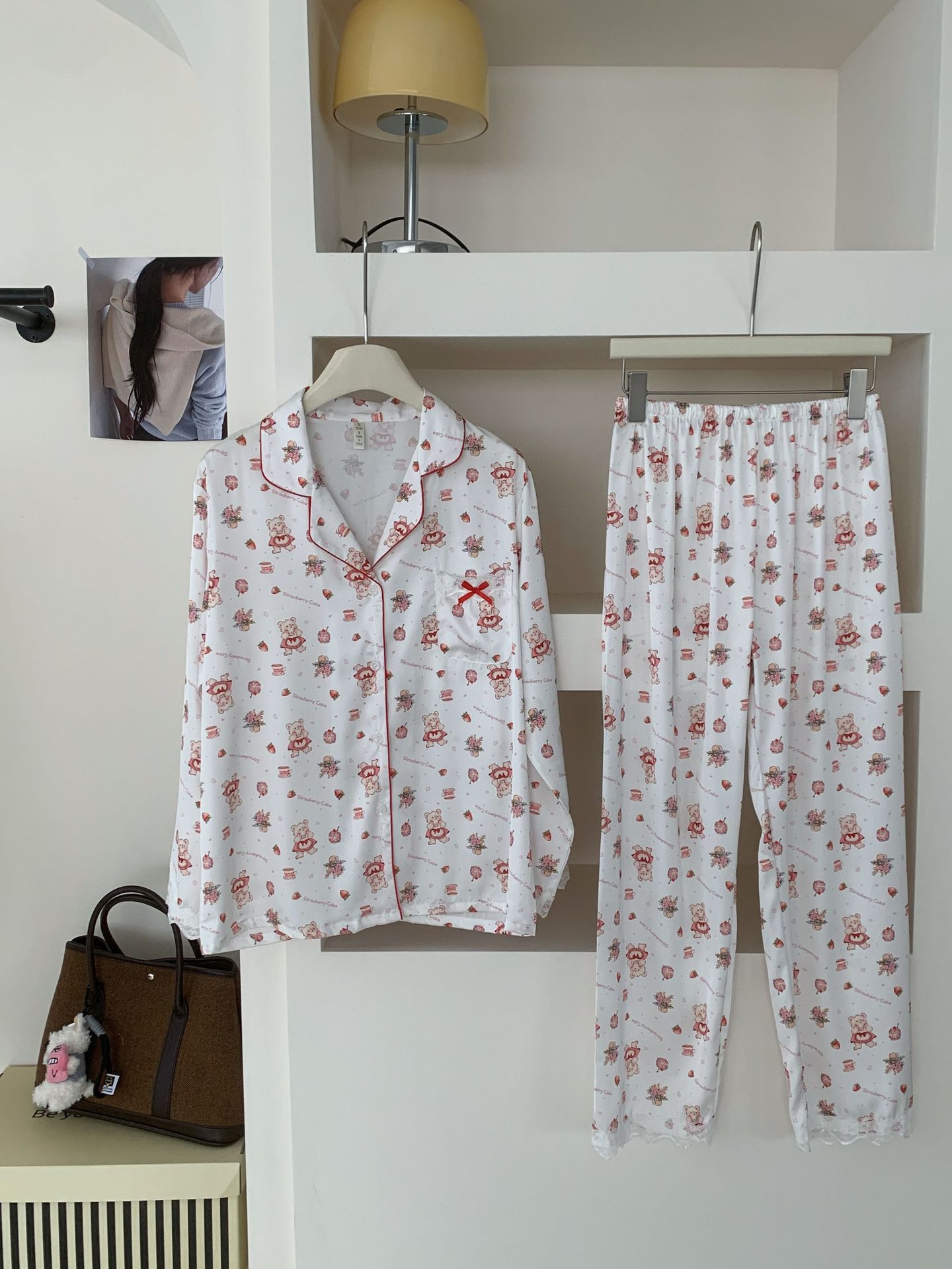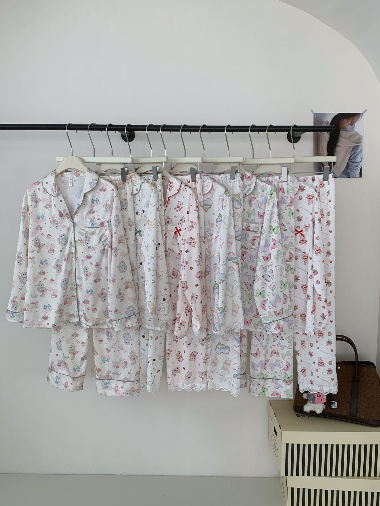 봄 새로운 만화 캐릭터 멀티 컬러 옵션 코튼 여성용 잠옷 편안한 통기성 긴 소매 바지 홈 의류 세트스토어 가기