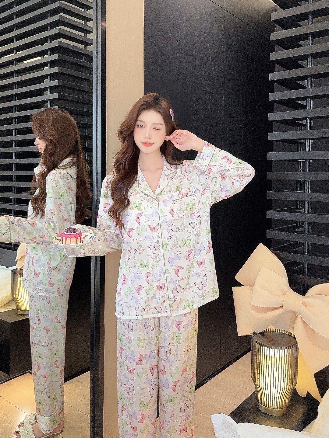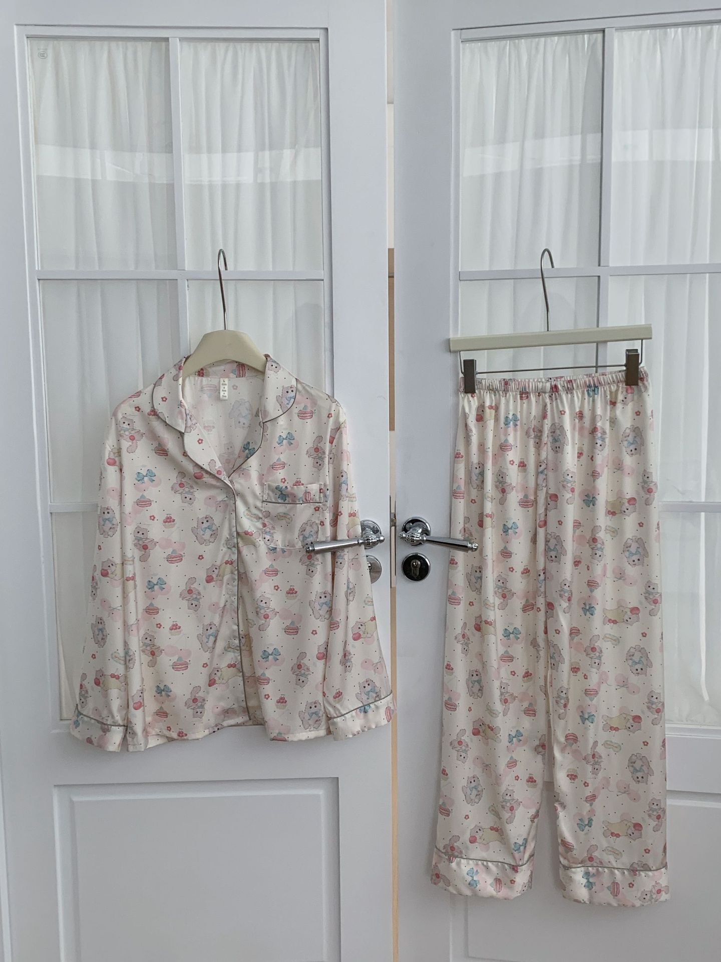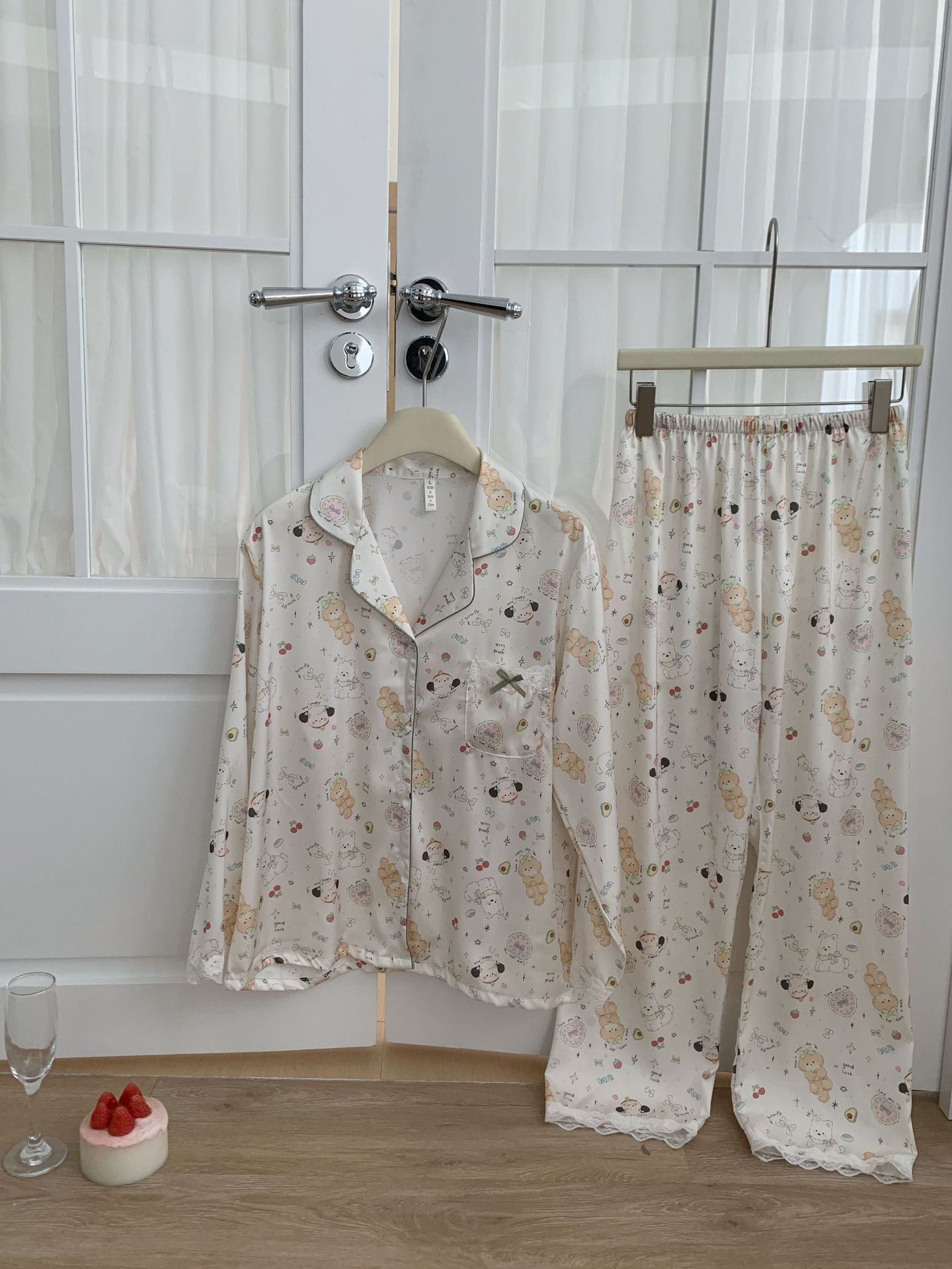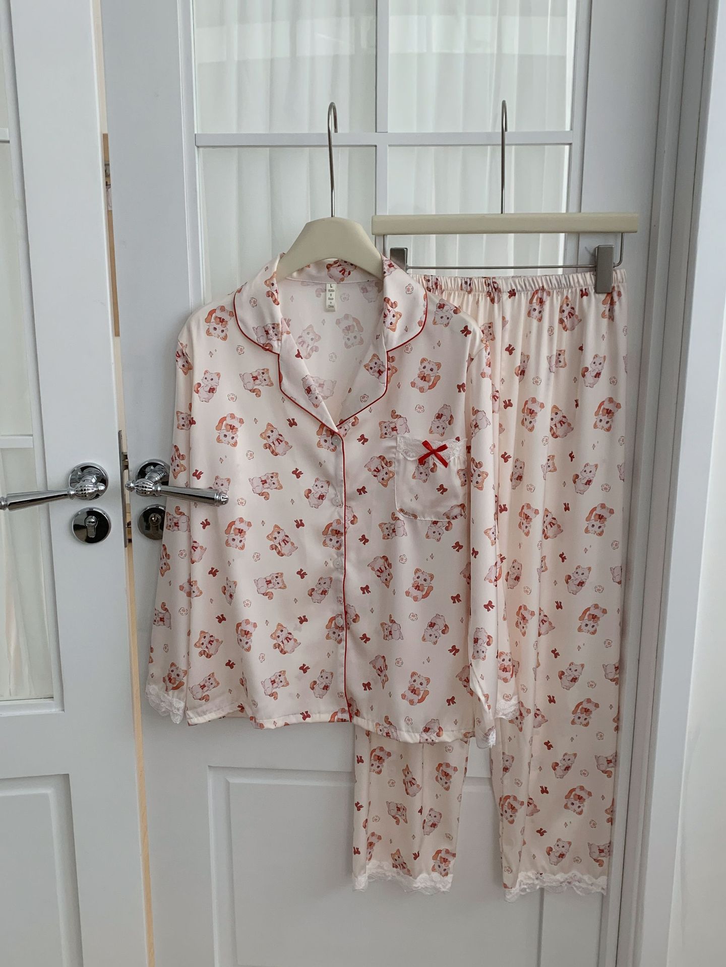봄 새로운 만화 캐릭터 멀티 컬러 옵션 코튼 여성용 잠옷 편안한 통기성 긴 소매 바지 홈 의류 세트스토어 가기