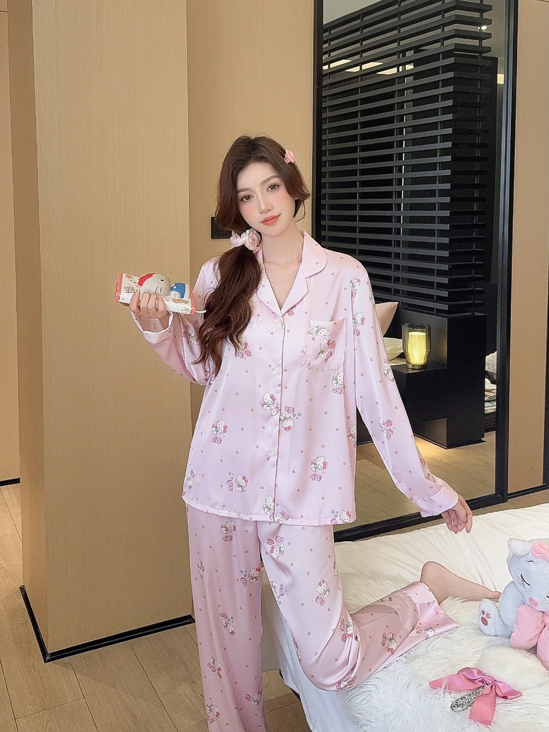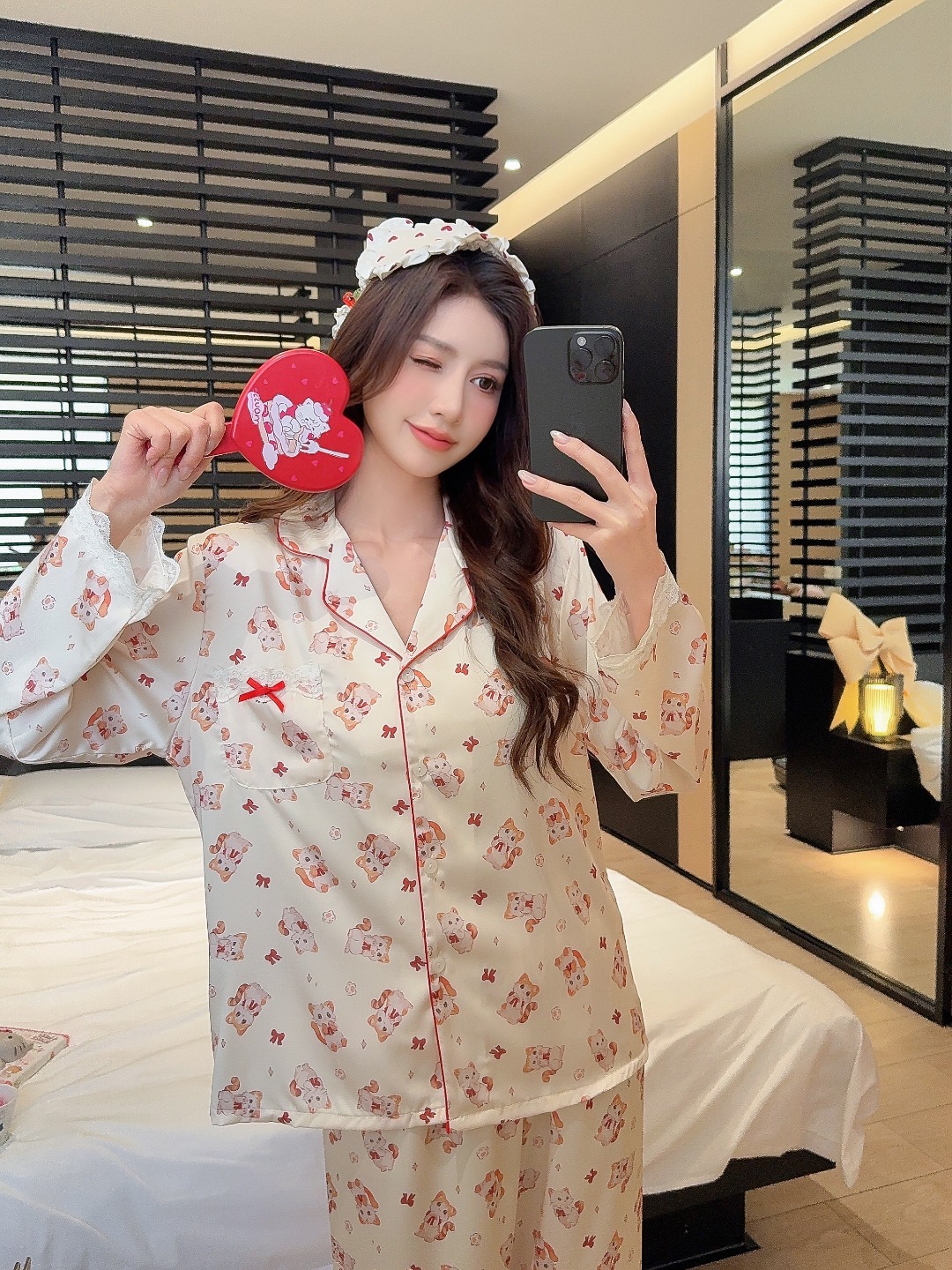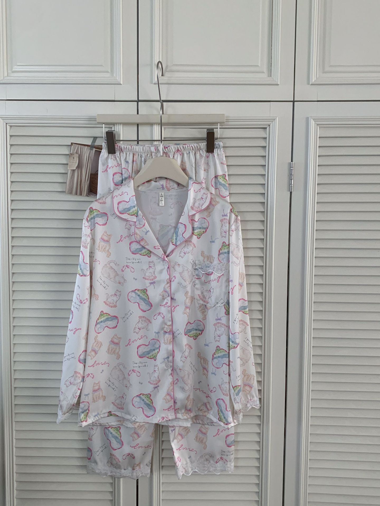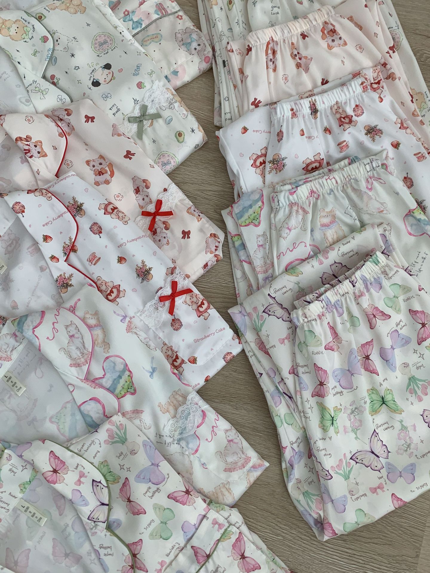 봄 새로운 만화 캐릭터 멀티 컬러 옵션 코튼 여성용 잠옷 편안한 통기성 긴 소매 바지 홈 의류 세트스토어 가기