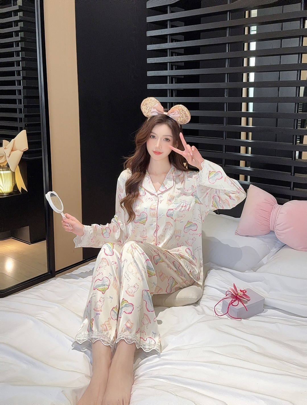 봄 새로운 만화 캐릭터 멀티 컬러 옵션 코튼 여성용 잠옷 편안한 통기성 긴 소매 바지 홈 의류 세트