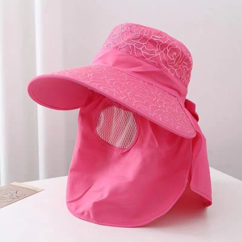 여성용 여름 대형 챙 태양 모자, 자외선 차단, 야외 목 보호, 얼굴 덮음, 차 따기 모자, 마스크, 통기성 자외선 차단 모자
