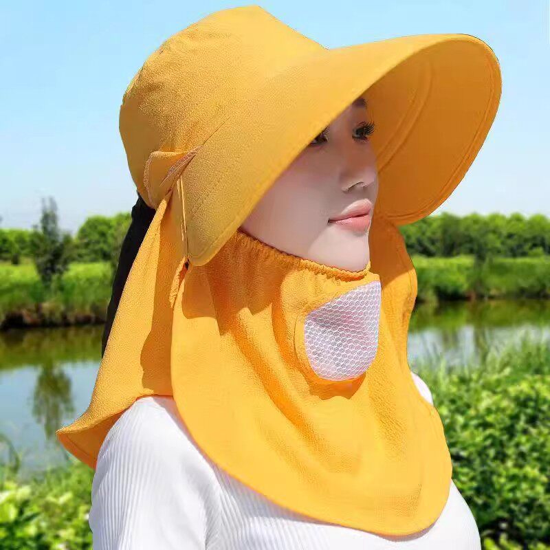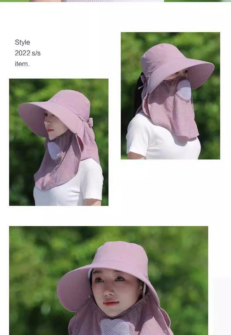 여성용 여름 대형 챙 태양 모자, 자외선 차단, 야외 목 보호, 얼굴 덮음, 차 따기 모자, 마스크, 통기성 자외선 차단 모자스토어 가기