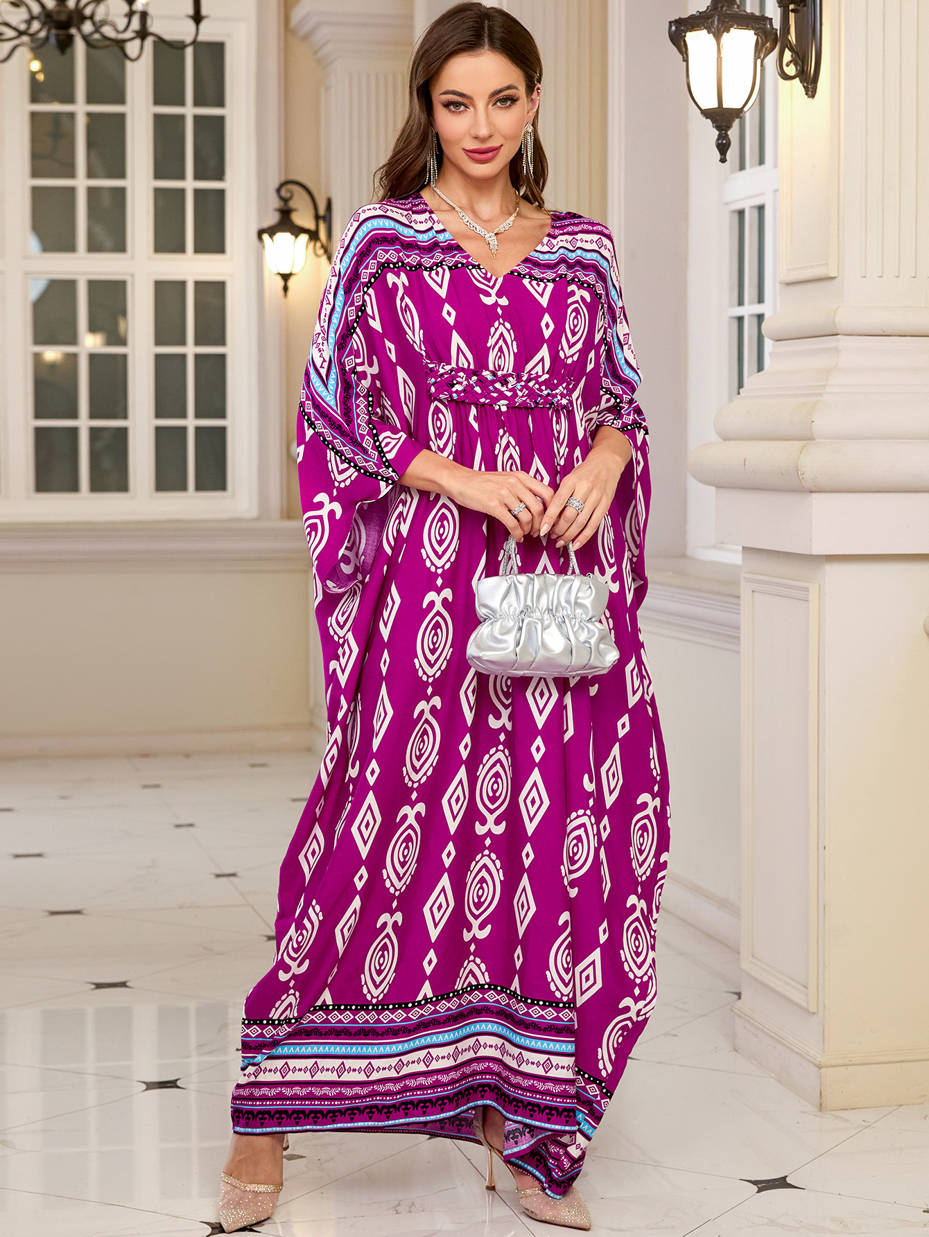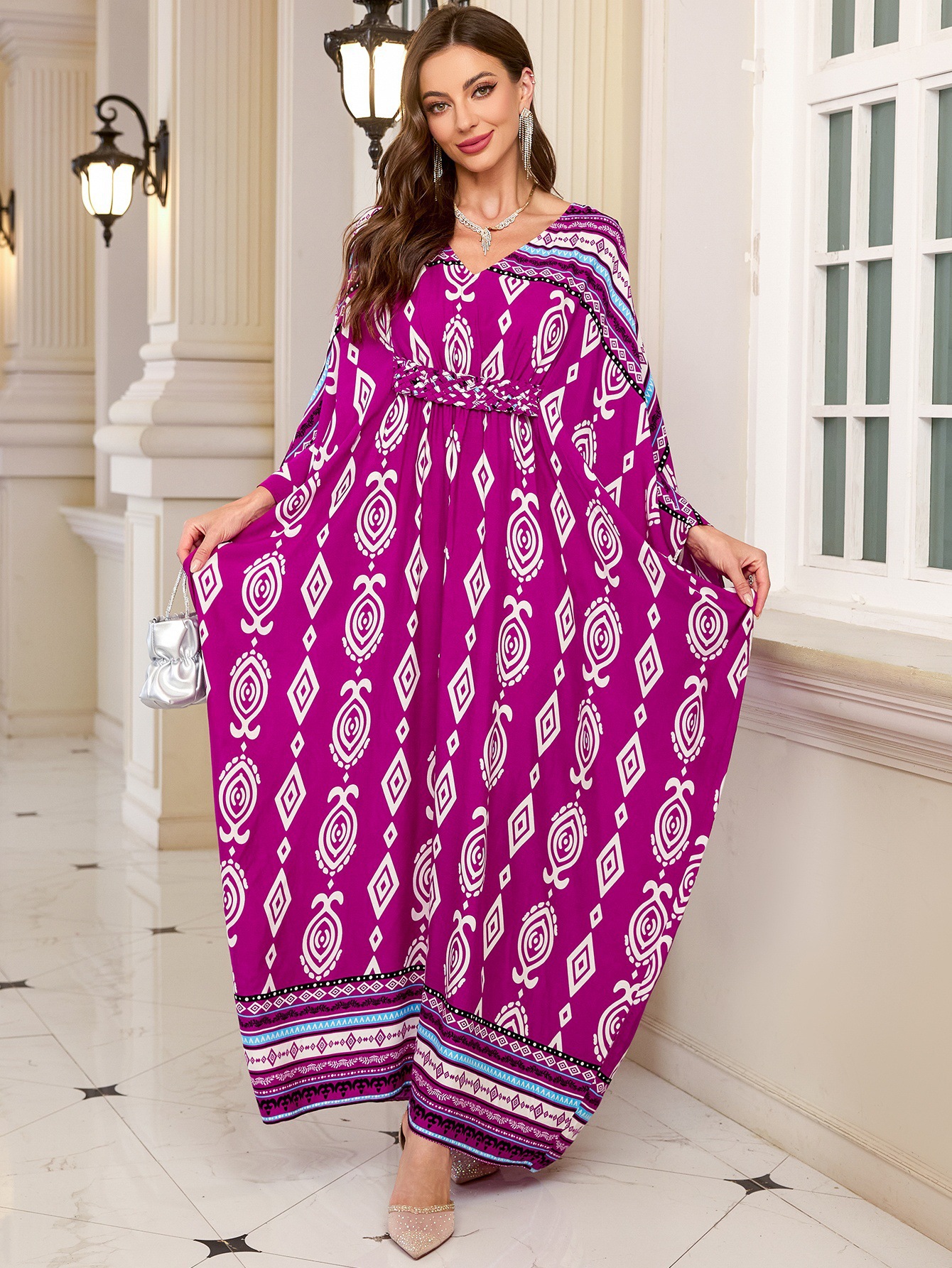 비치 블라우스 허리 짠 면화 포지셔닝 프린트 휴가 비치 블라우스 국경 아마존 여성 원피스