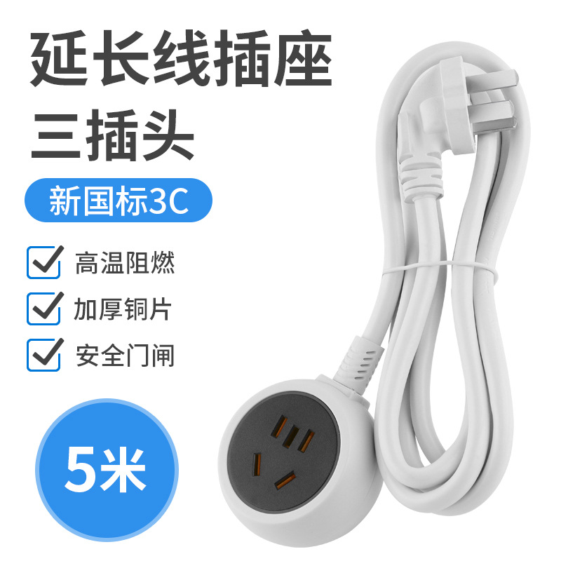 • 【3핀 플러그】【 5m 】 원형 5구 연장 코드