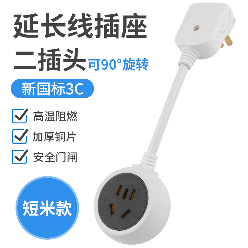 • [90도 2플러그] 짧은 미터 스타일 [ 0.2m ] 원형 5구 연장 코드