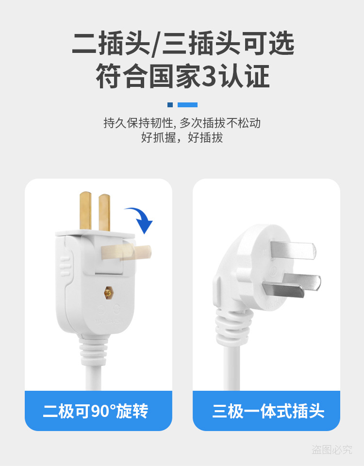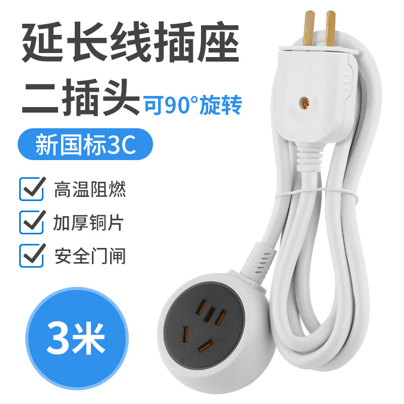 • [90도 2플러그]【3m】 원형 5구 연장 코드