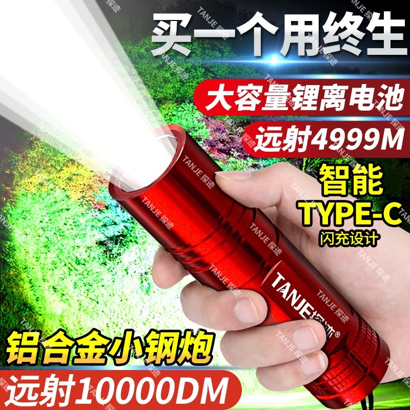 [활동] 알루미늄 합금 작은 강철 총 손전등 휴대용 야외 충전식 등산 가정용 다기능 램프