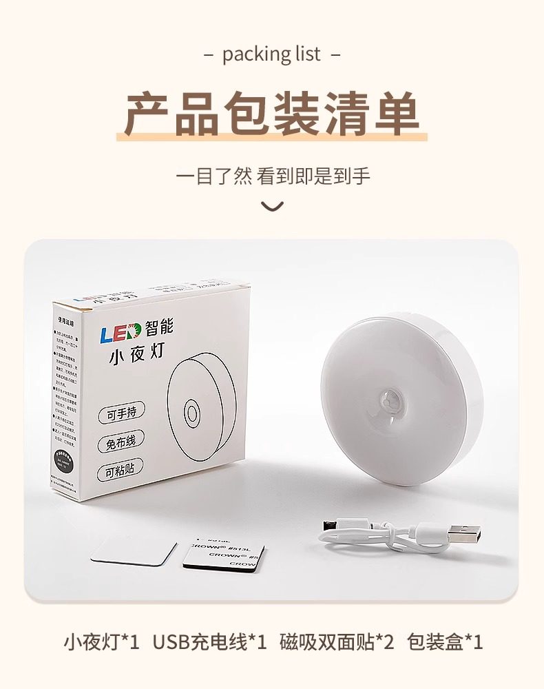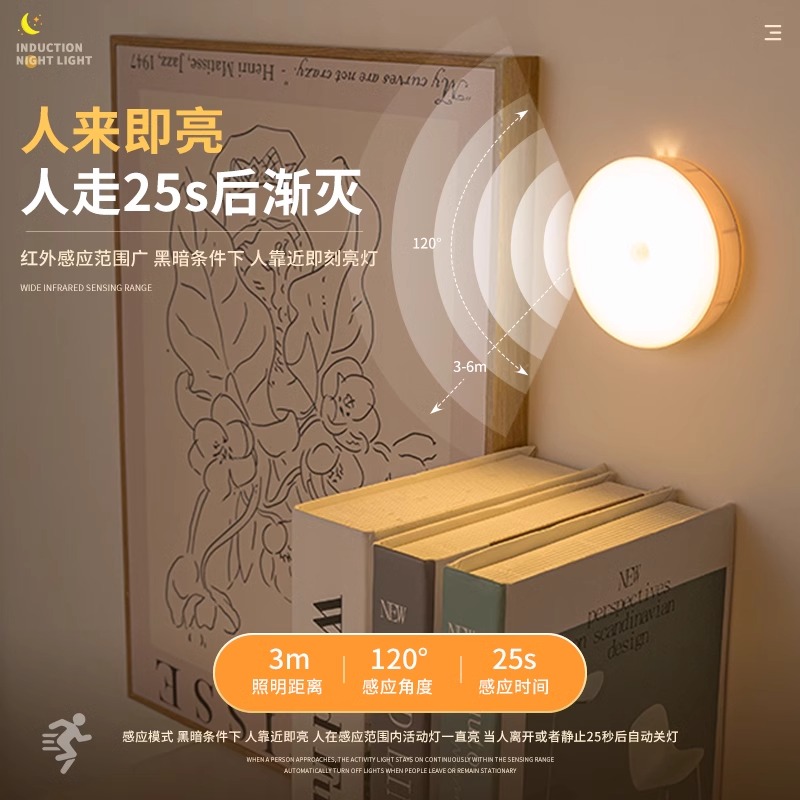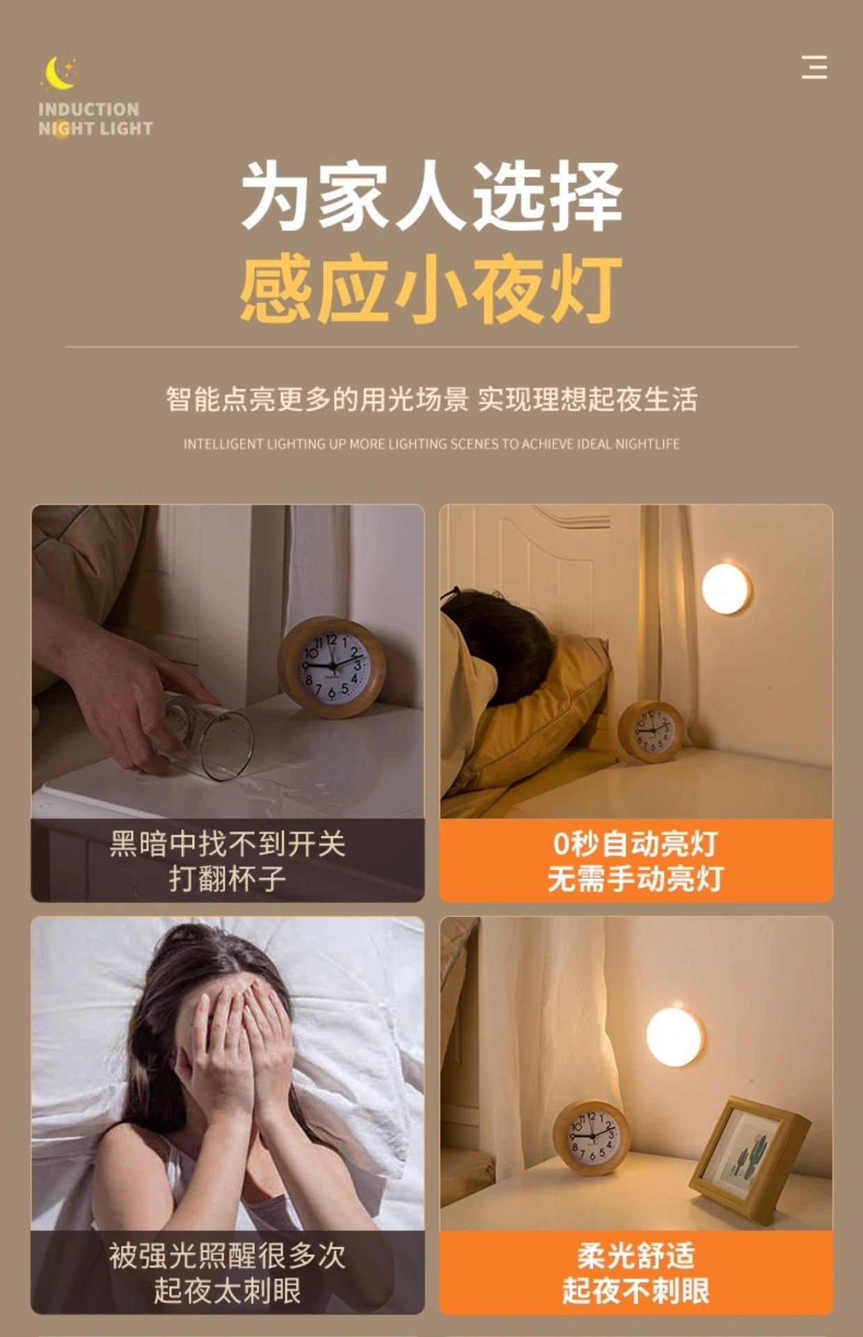 인체 감지등 복도 통로 화장실 음성 제어 충전식 야간등 침대 옆 LED등 분위기등 스마트