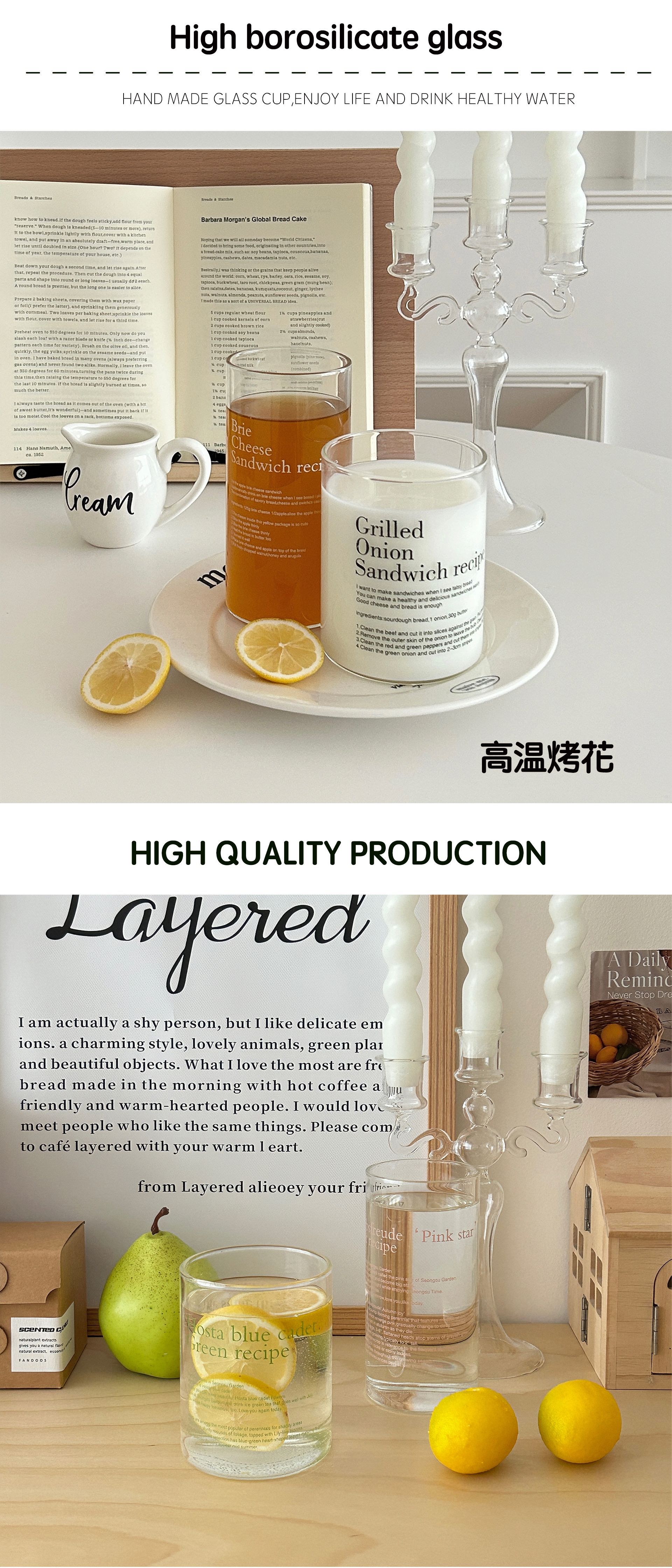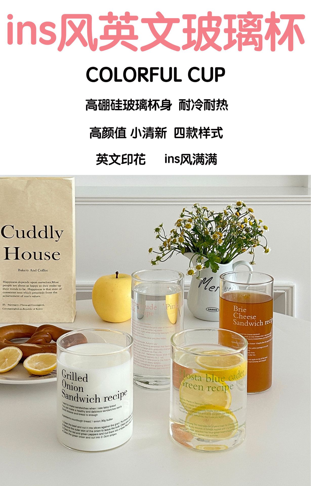 Ins 스타일 작은 신선한 영어 유리 아트 스타일 사무실 매일 홈 우유 차 우유 주스 커피 컵