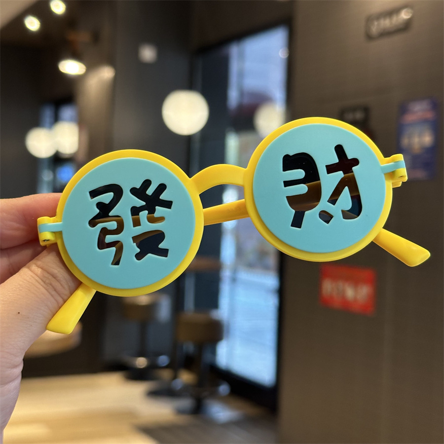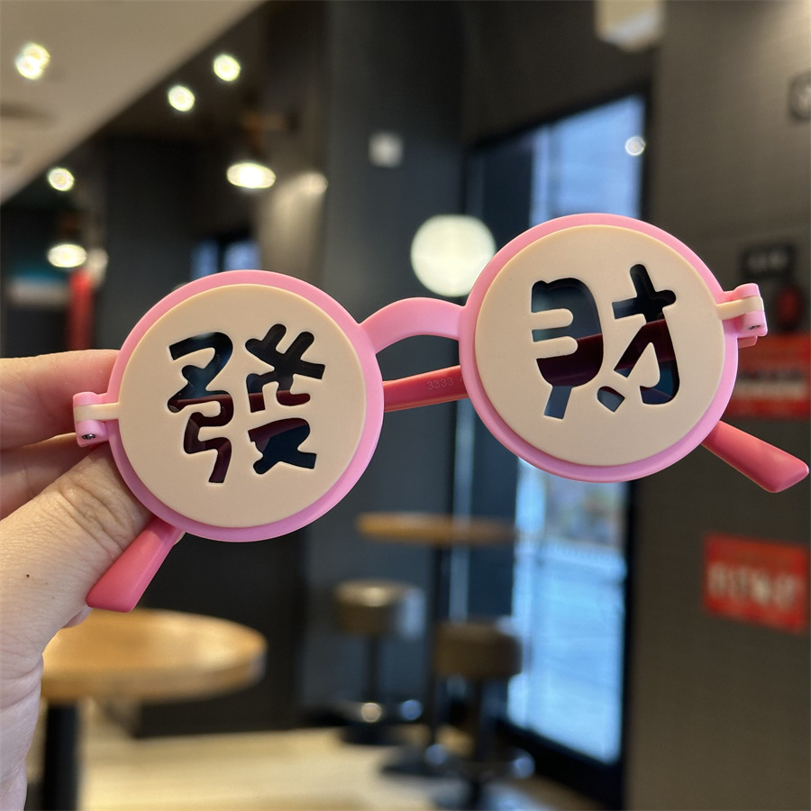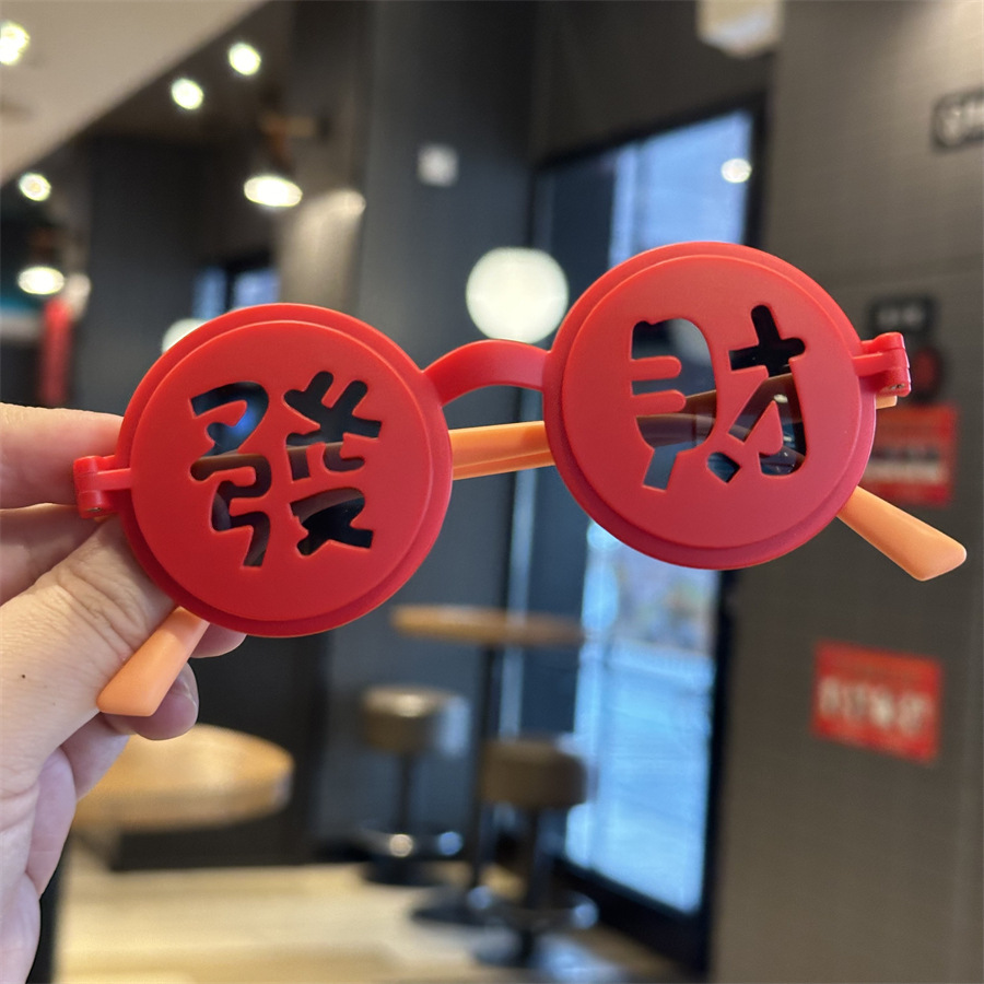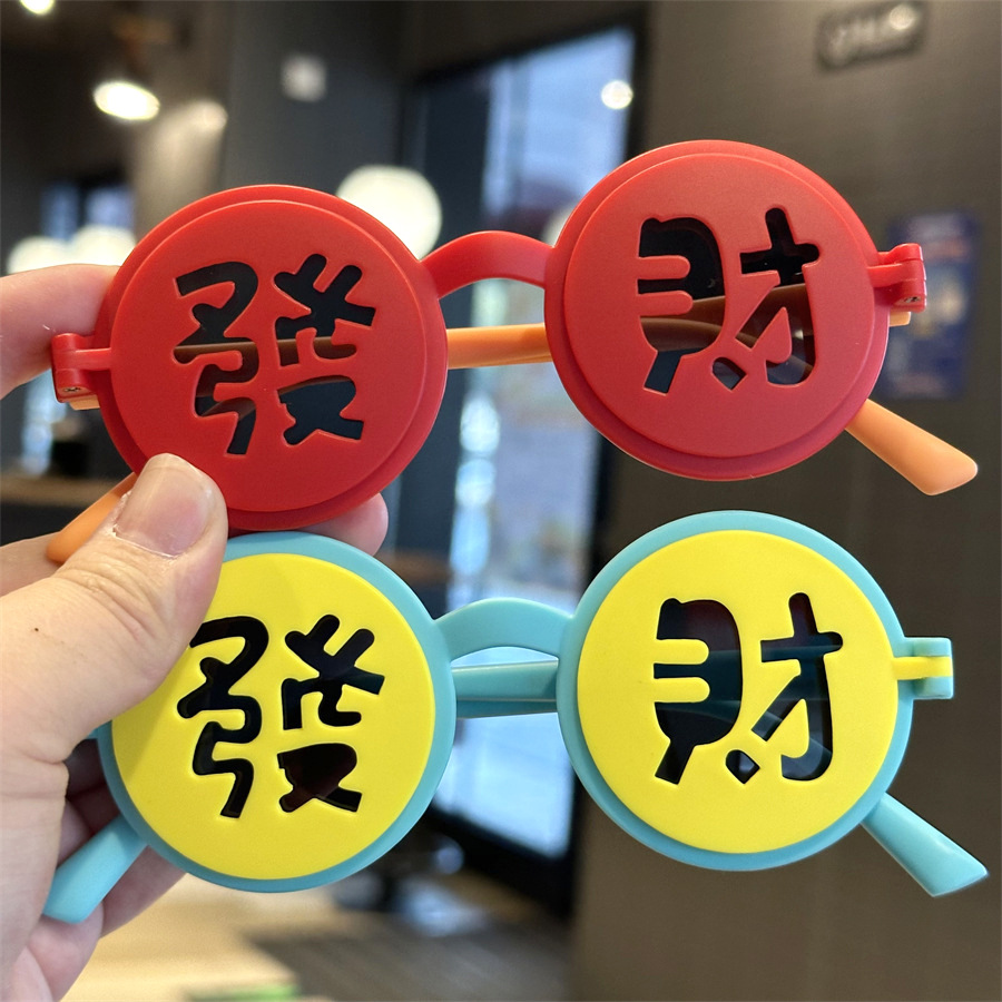 2025 어린이 국가 스타일 포춘 해피 뉴 이어 선글라스 축제 라운드 플립 커버 선글라스 UV 보호 어린이 파티 거울