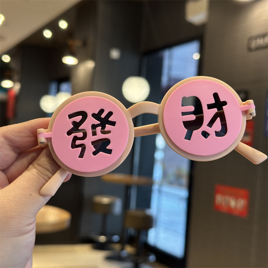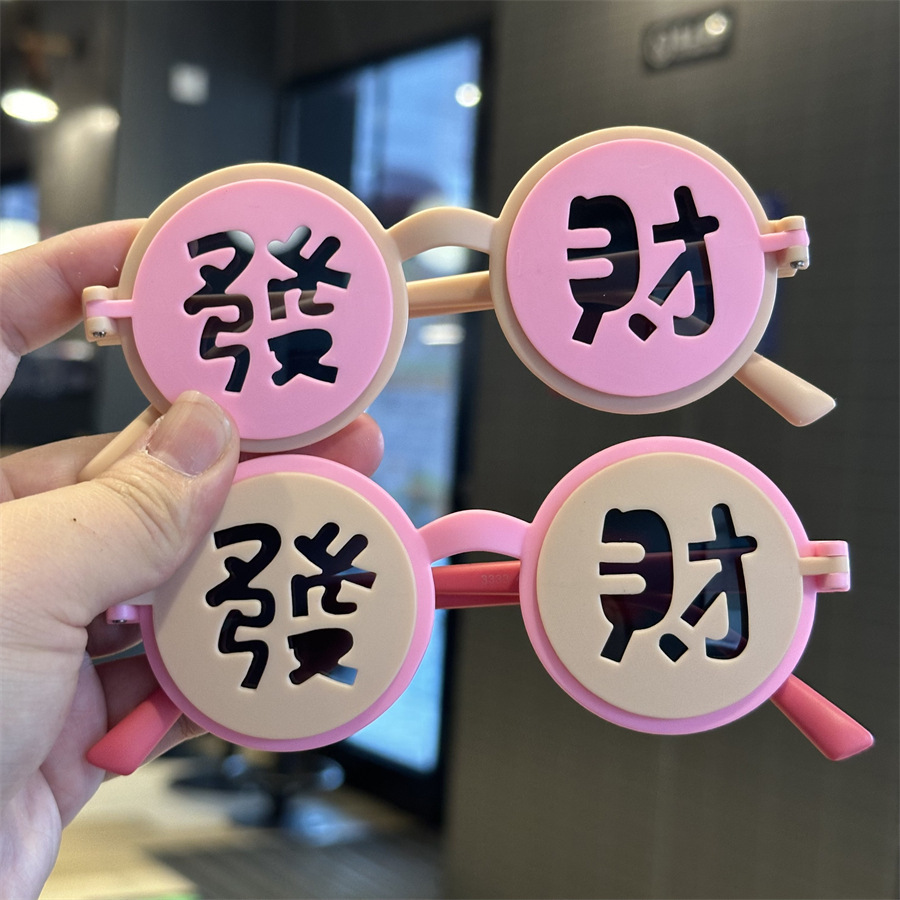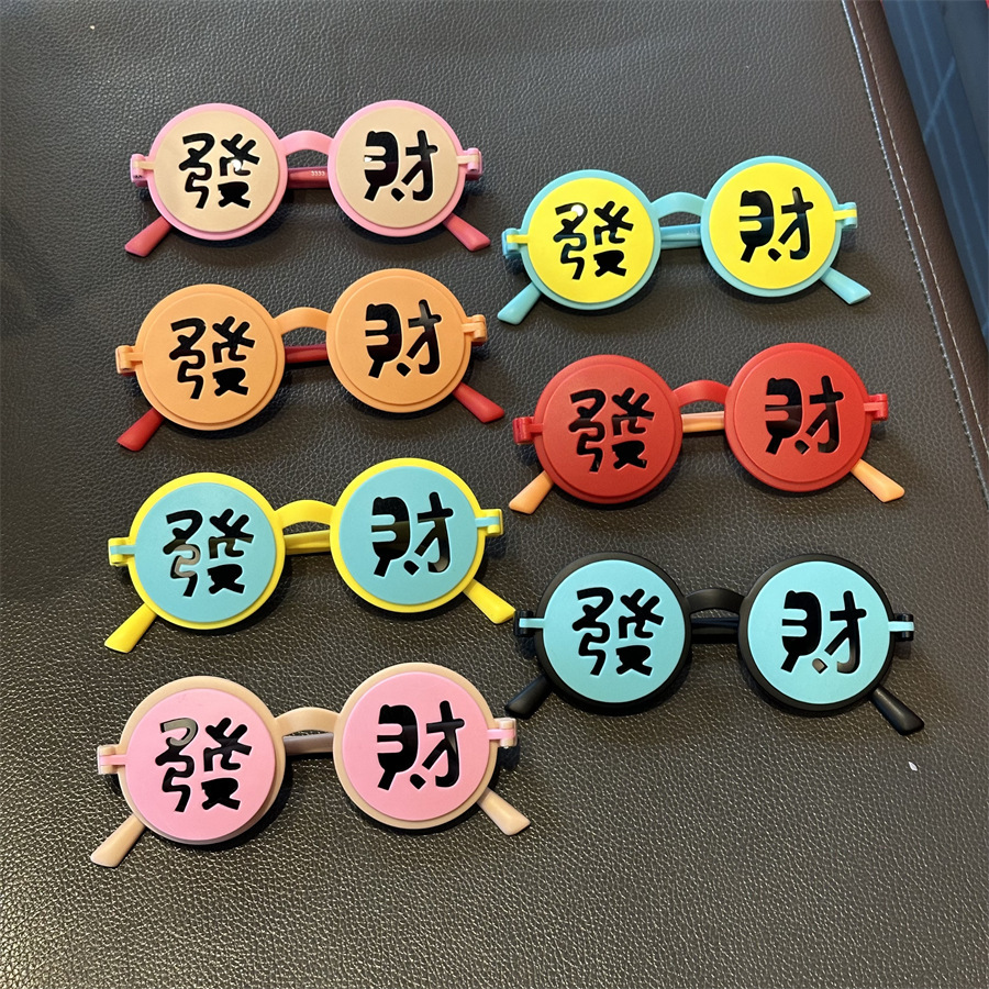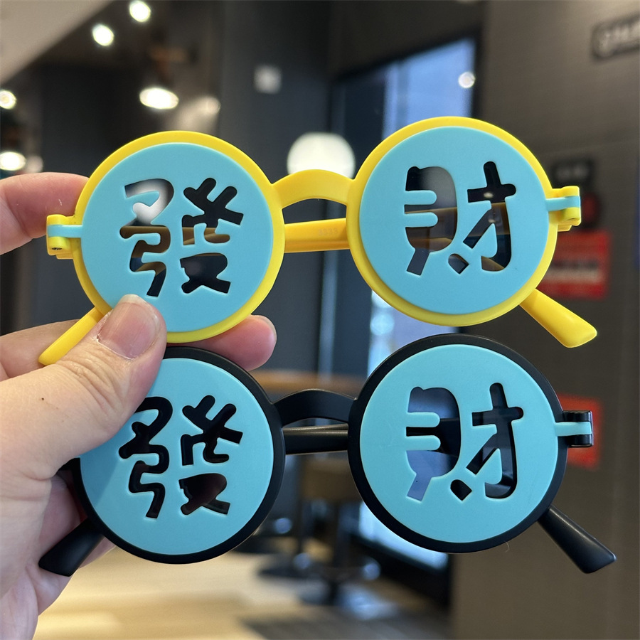 2025 어린이 국가 스타일 포춘 해피 뉴 이어 선글라스 축제 라운드 플립 커버 선글라스 UV 보호 어린이 파티 거울