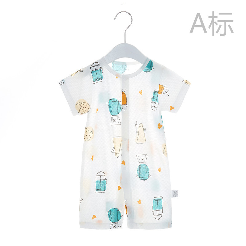 아기 반팔 점프 수트 순면 0-6 개월 아기 여름 얇은 하옷 3 남녀 신생아 잠옷 등반 옷스토어 가기