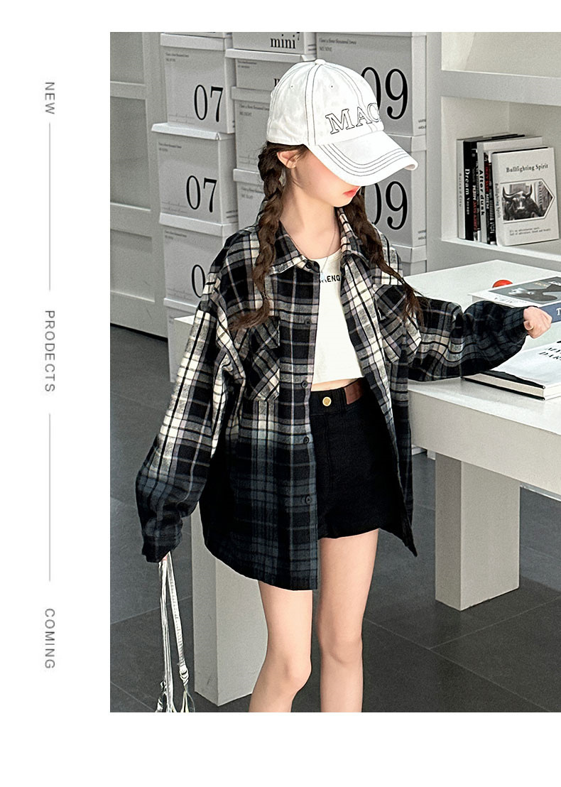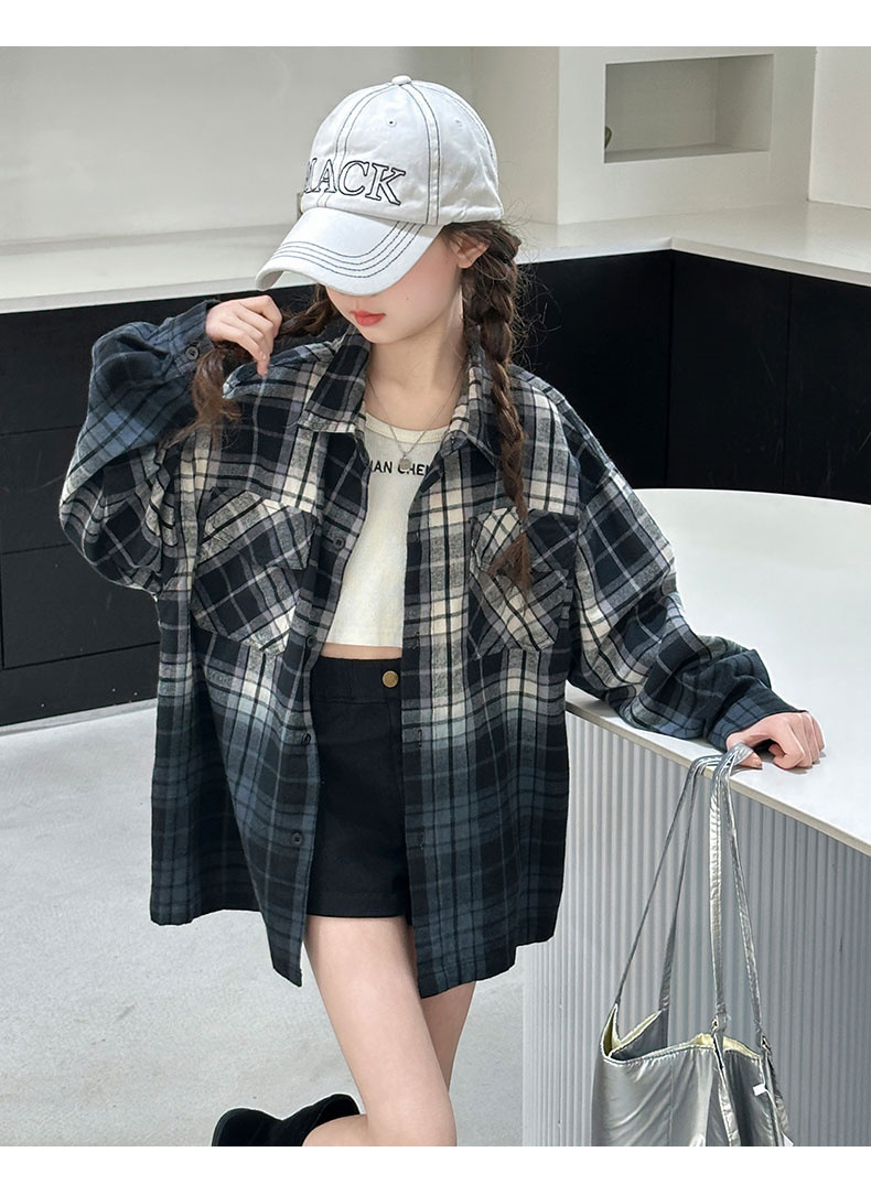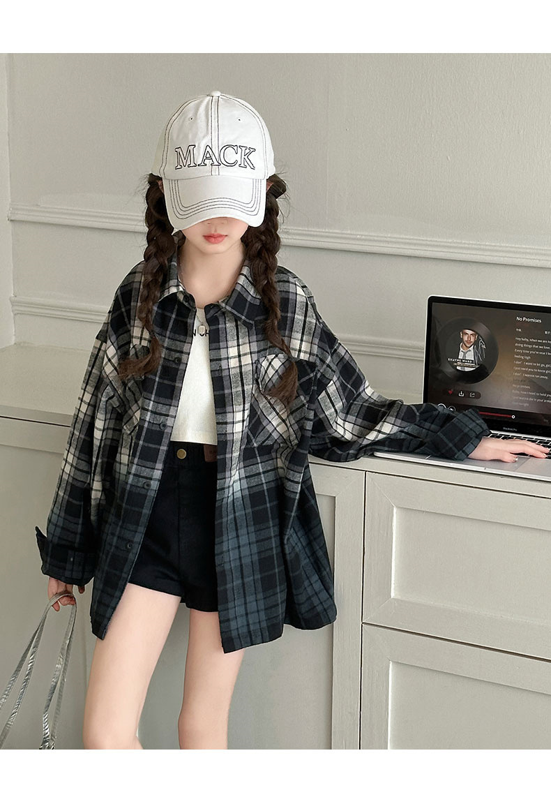 소녀의 점진적 컬러 격자 무늬 셔츠 봄과 가을 2025 새로운 어린이 봄 서양 스타일 유행 큰 소녀의 봄 탑스토어 가기