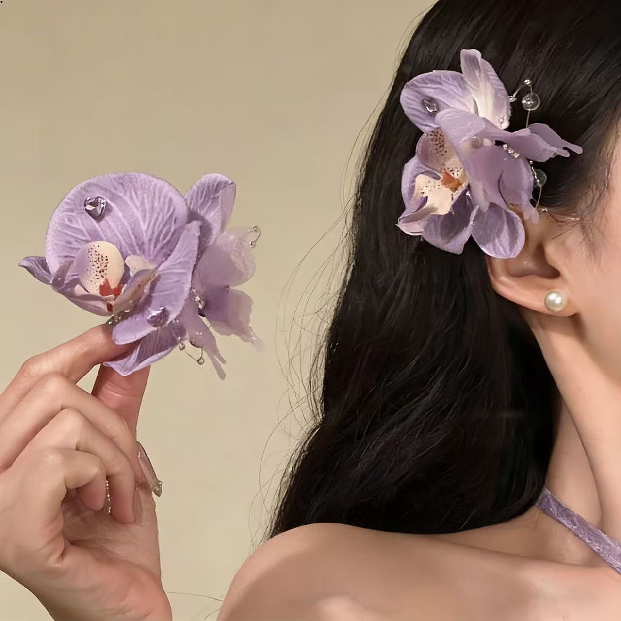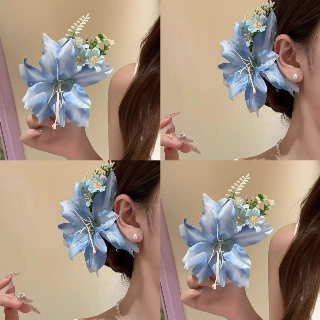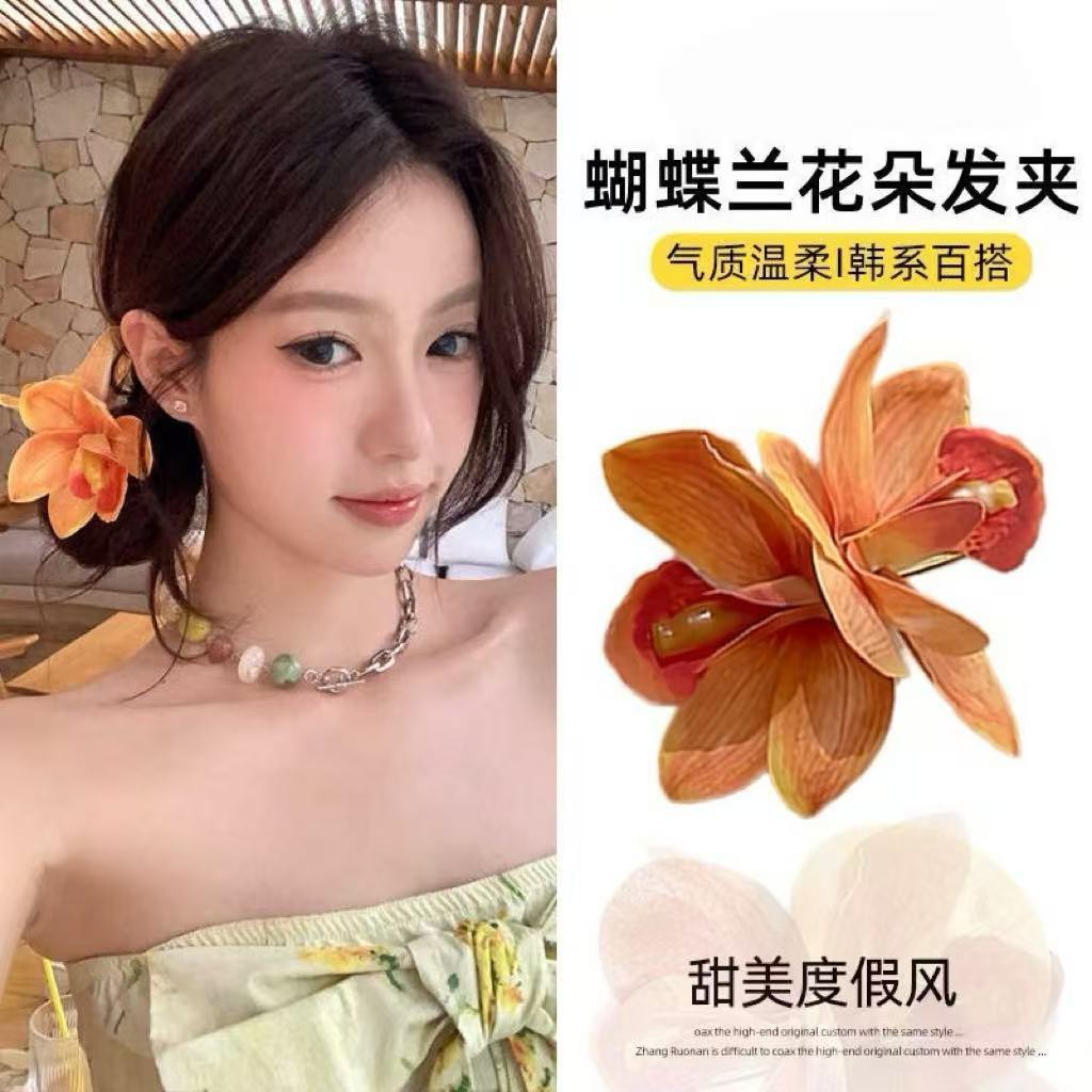 순수한 욕망 바람 호접란 헤어핀 슈퍼 요정 시뮬레이션 릴리 플라워 해변 휴가 사진 헤드웨어 고급 헤어 액세서리 새로운스토어 가기