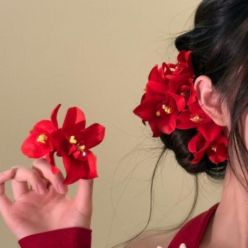 • 5816 섬세한 붉은 꽃 술 머리핀