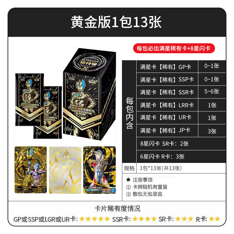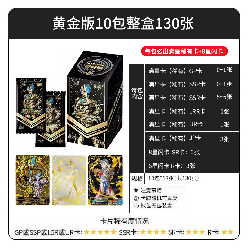 • 골드 버전은 총 130장의 카드가 들어 있는 10팩으로 구성된 상자에 들어 있습니다.
