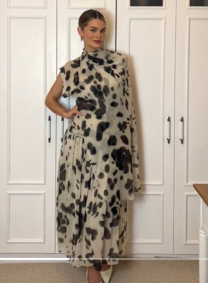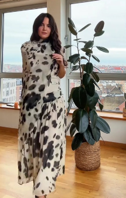 ZA 프린트 타이 염색 반팔 하이 웨이스트 슬림 핏 원피스 크로스 보더 유럽과 미국 패션 기질 중간 길이 스커트스토어 가기