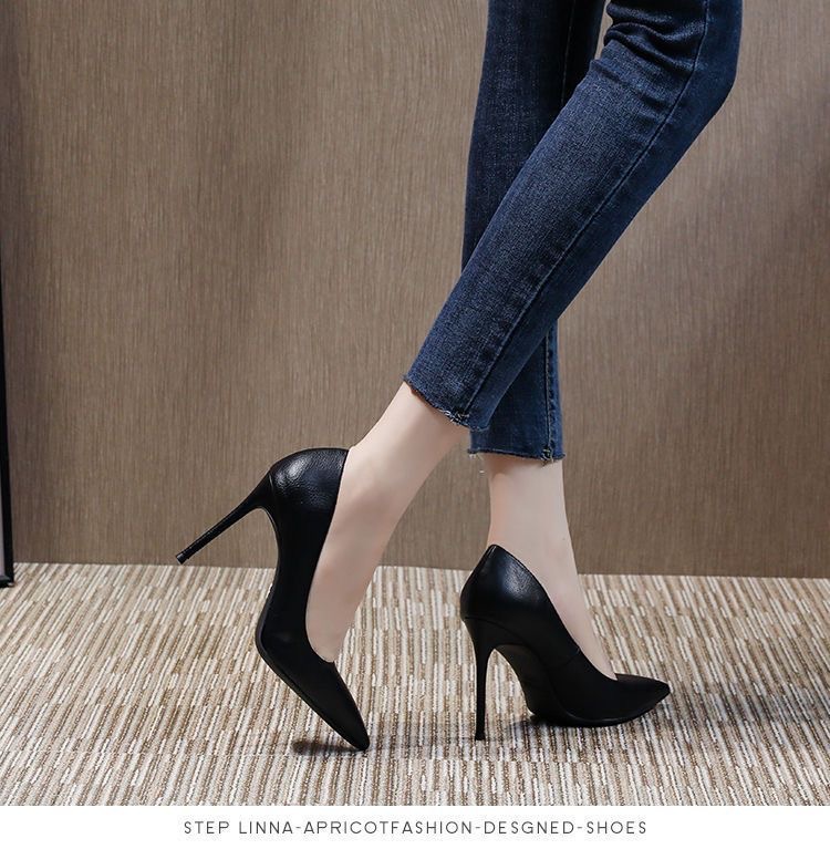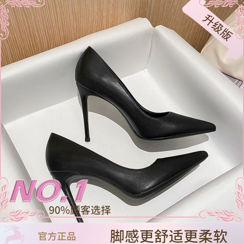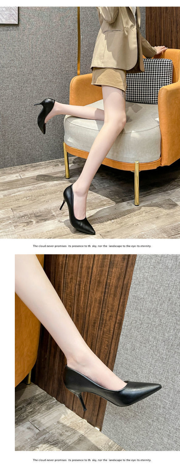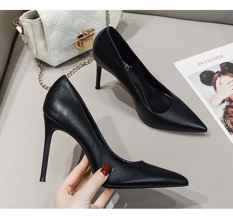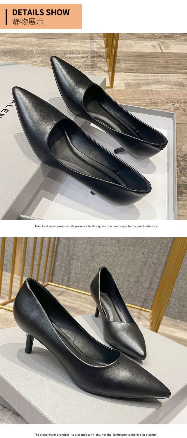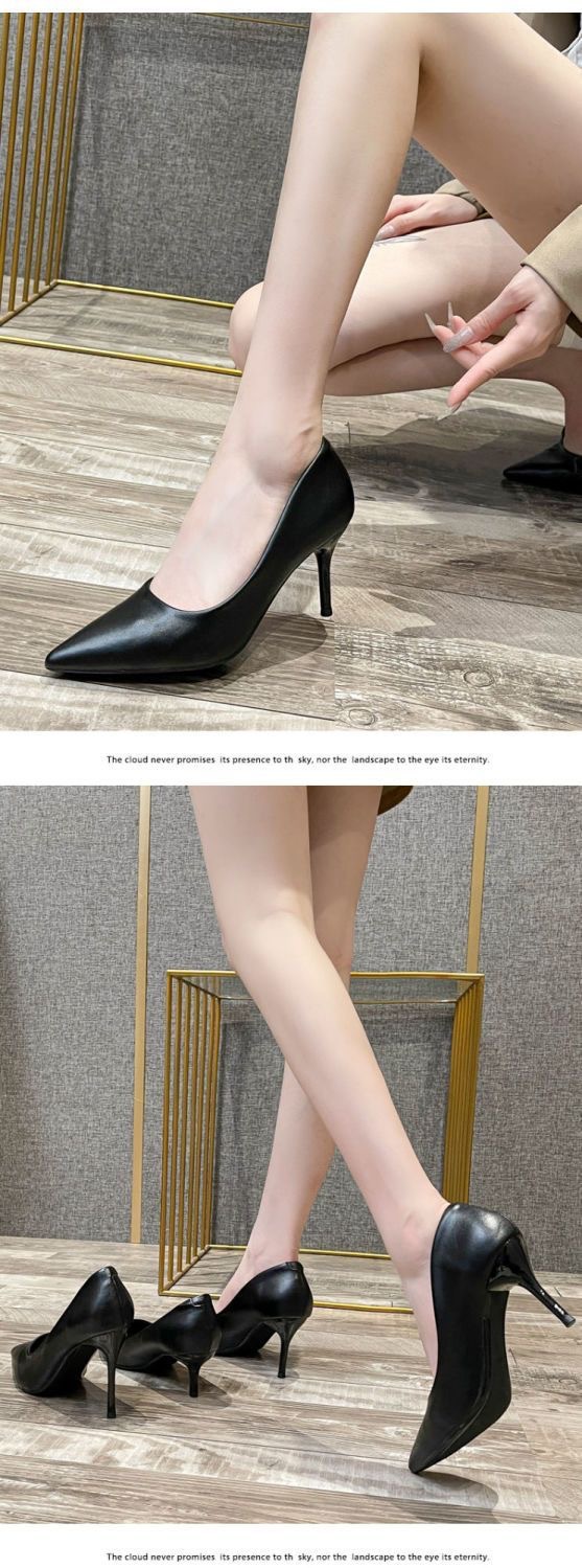매트 하이힐 여성 블랙 2025 새로운 통근 지적 스틸레토 힐 미끄럼 방지 원피스 에티켓 작업 신발스토어 가기