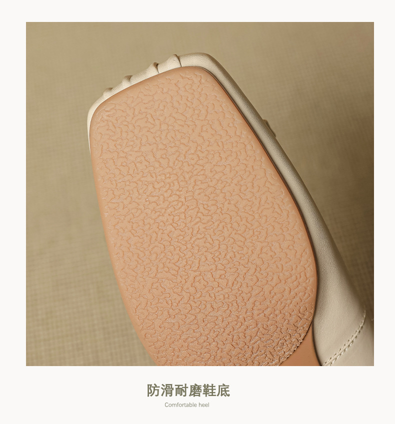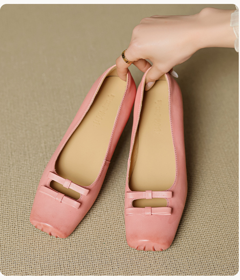 스퀘어 헤드 메리 제인 신발 여성 돼지 코 두꺼운 힐 신발 더블 활 미드 힐 신발 핑크 헤드 레이어 Cowhide 여성용 신발