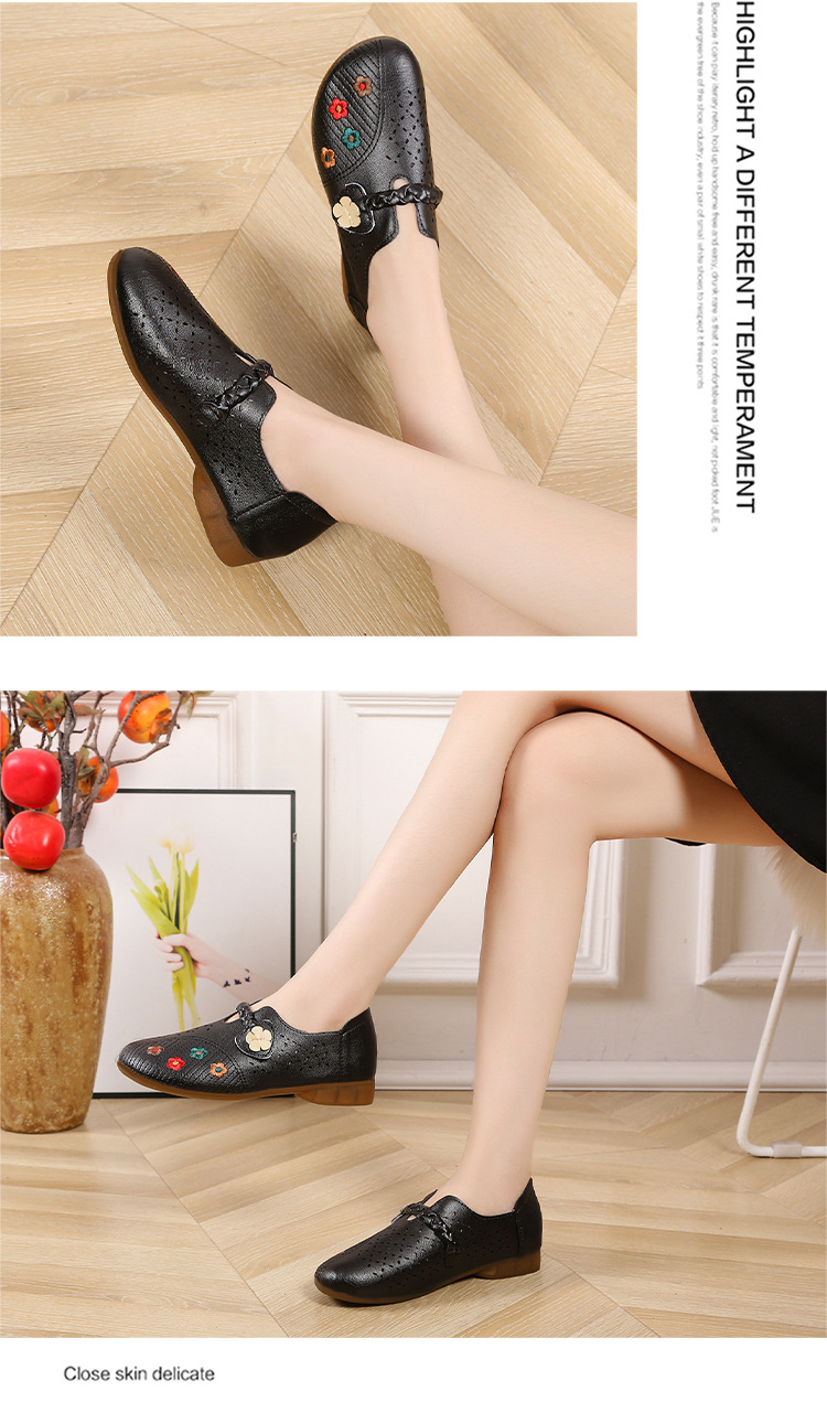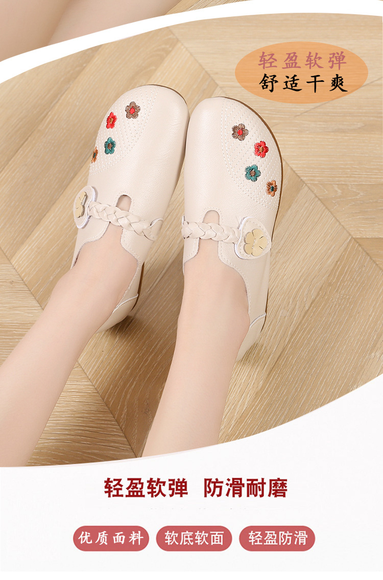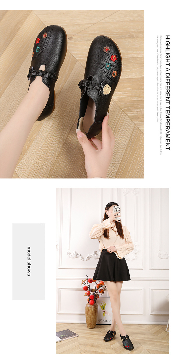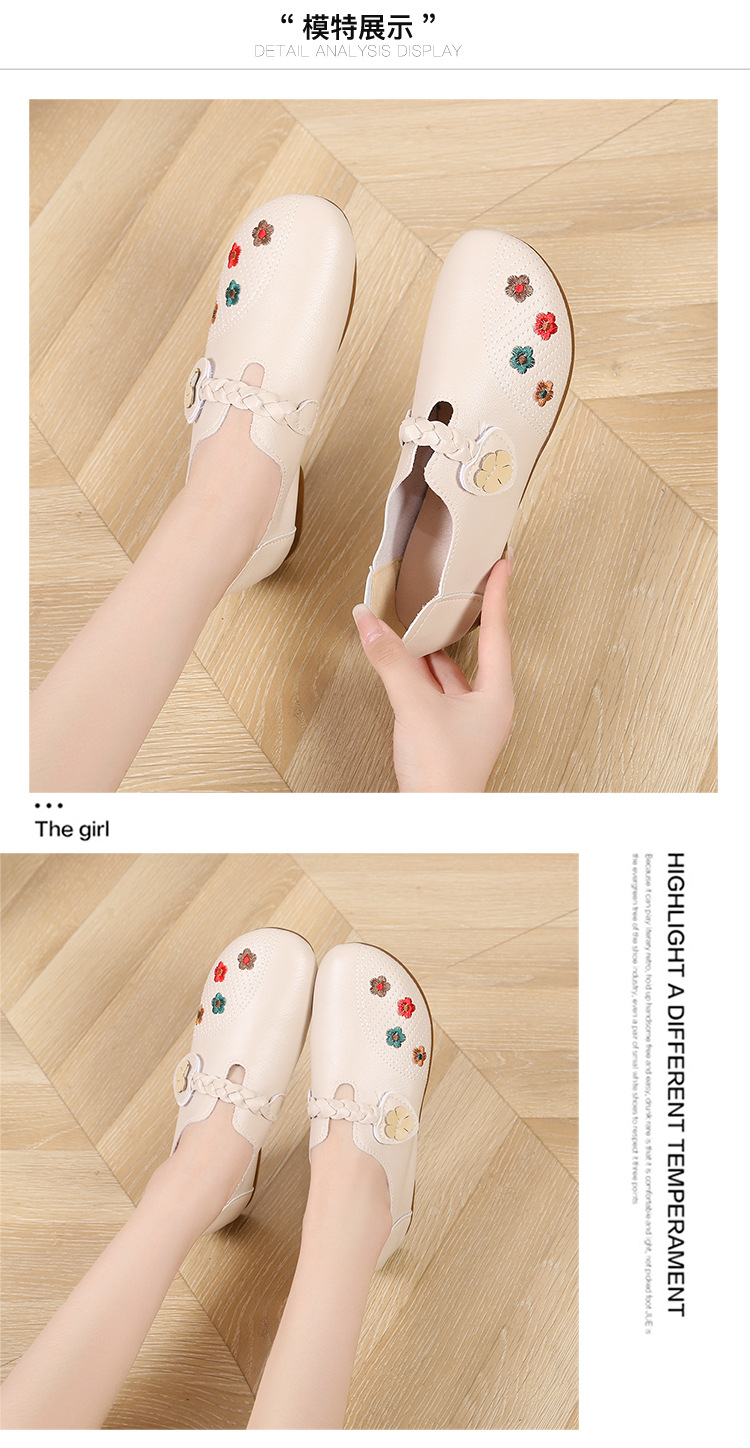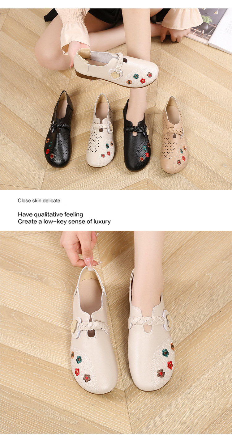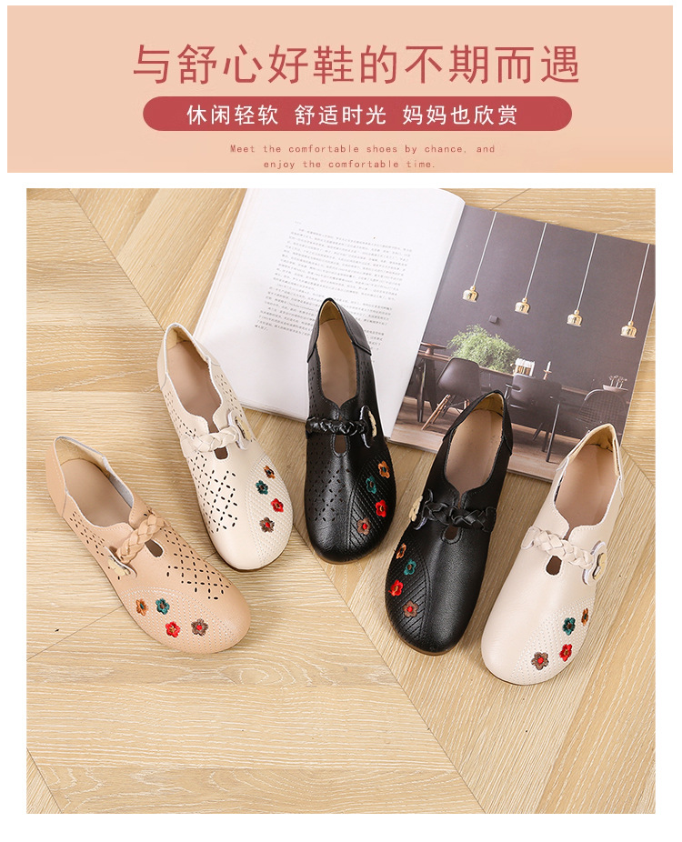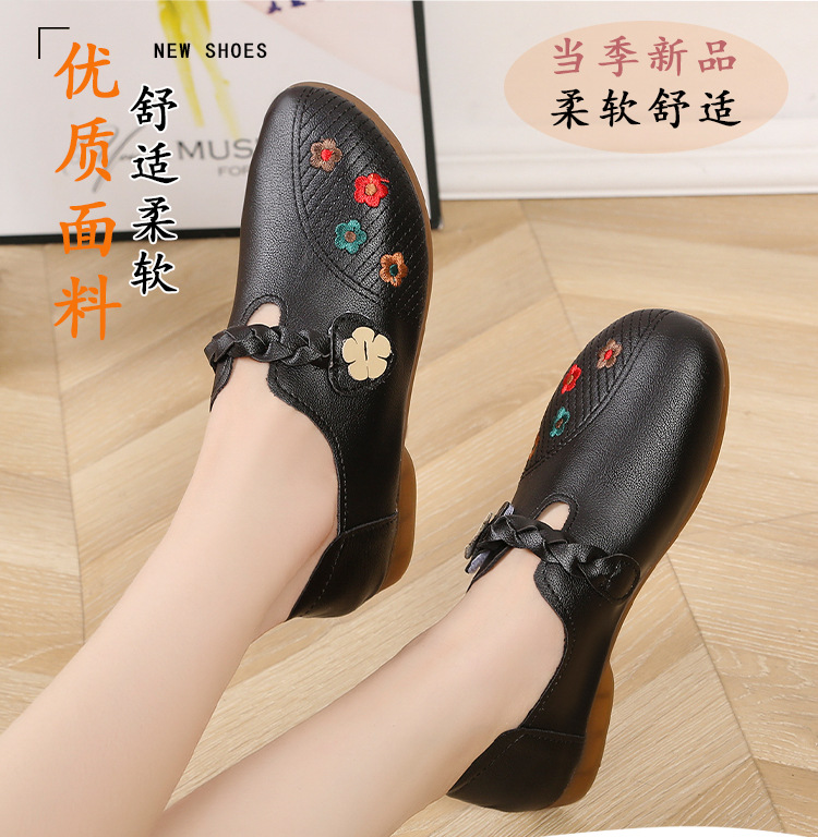부드러운 가죽 소프트 단독 미끄럼 방지 엄마 신발 봄과 여름 새로운 민족 스타일 싱글 레이어 신발 플랫 미끄럼 방지 소프트 솔 작은 가죽 신발스토어 가기