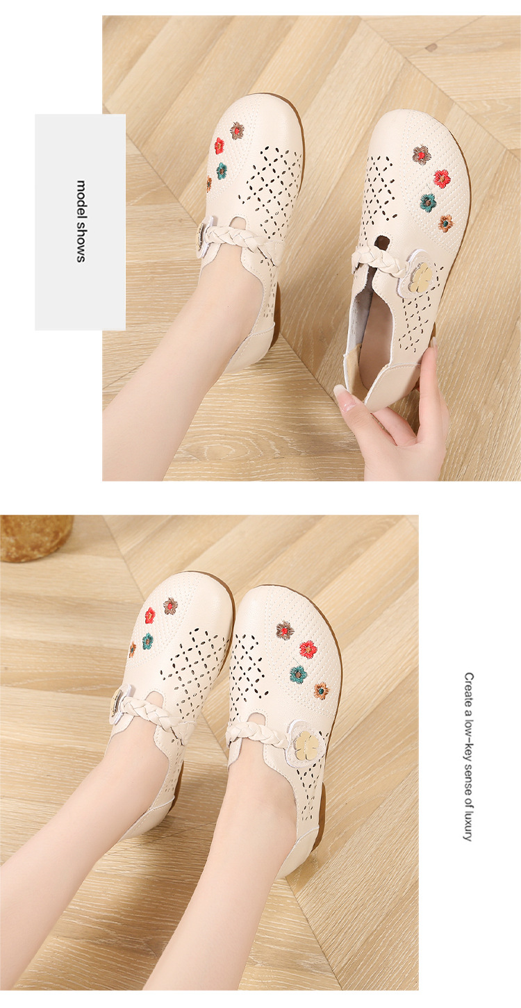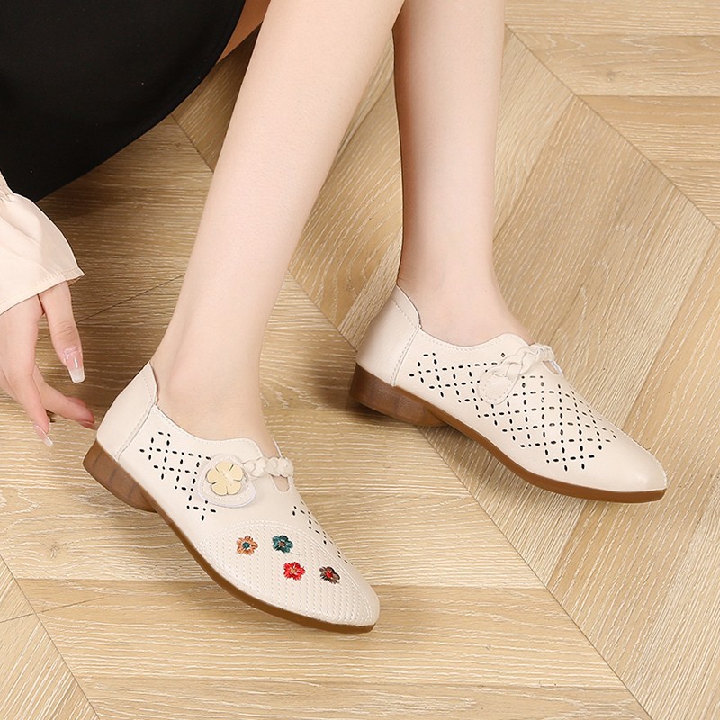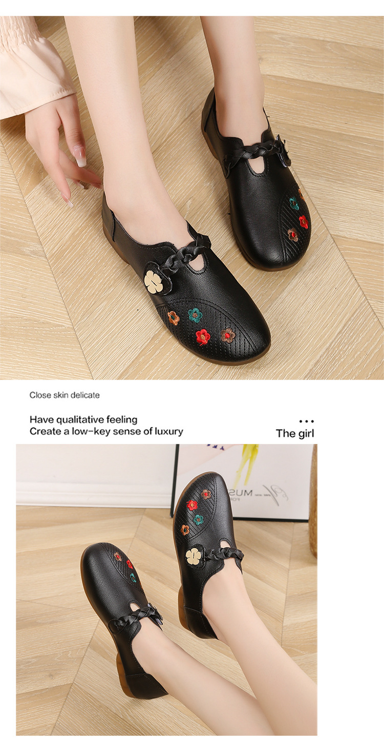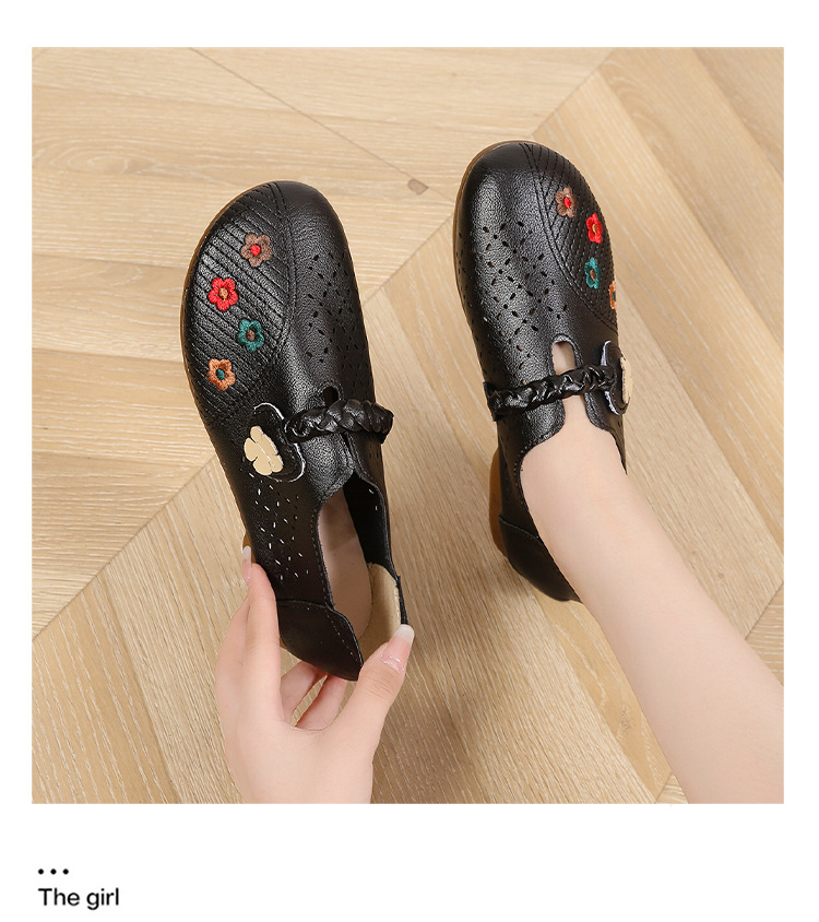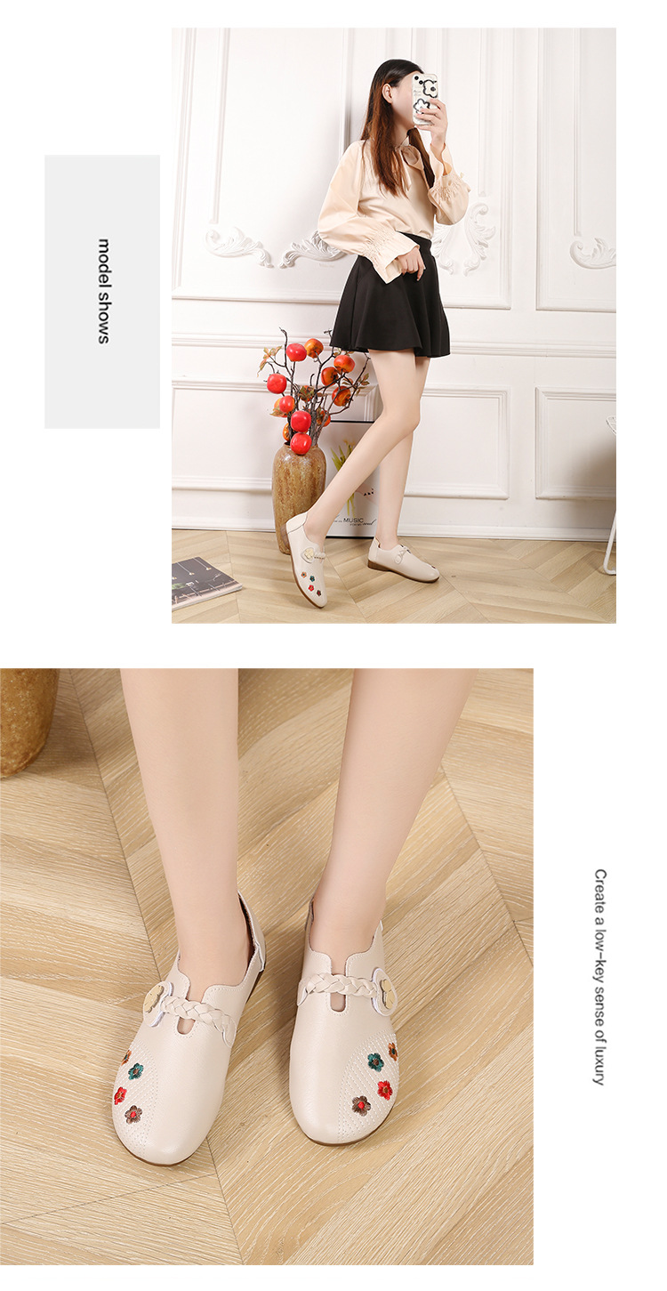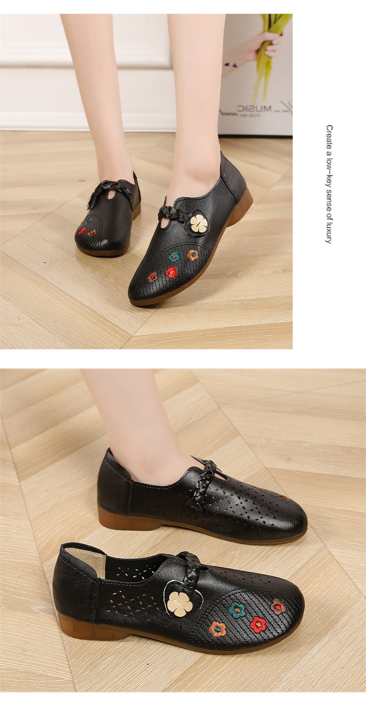 부드러운 가죽 소프트 단독 미끄럼 방지 엄마 신발 봄과 여름 새로운 민족 스타일 싱글 레이어 신발 플랫 미끄럼 방지 소프트 솔 작은 가죽 신발스토어 가기