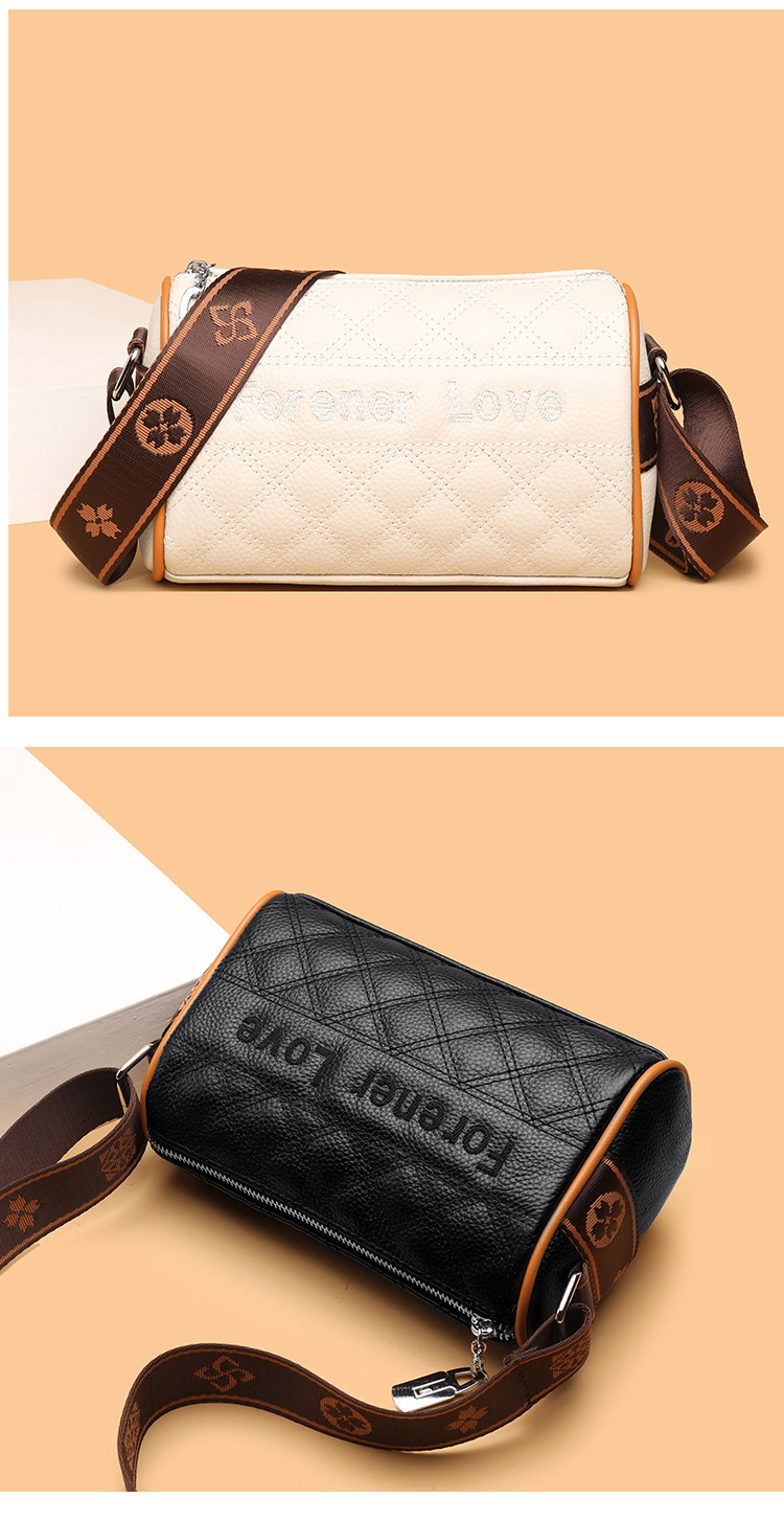 국경 도매 부드러운 가죽 여성 가방 상단 레이어 소 가죽 작은 가방 2025 새로운 다이아몬드 자수 라인 넓은 어깨 끈 어깨 메신저 가방