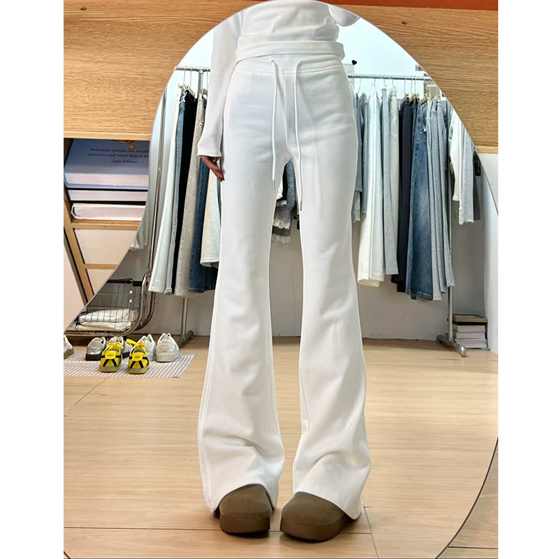 하이 퀄리티 # 풀 테일 품질 # 오리지널 패브릭 화이트 마이크로 혼 땀 바지 여성용 슬림 핏 말굽 바지 스판덱스