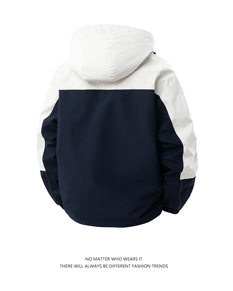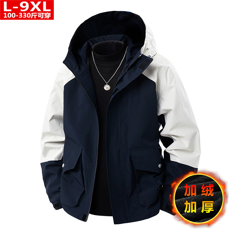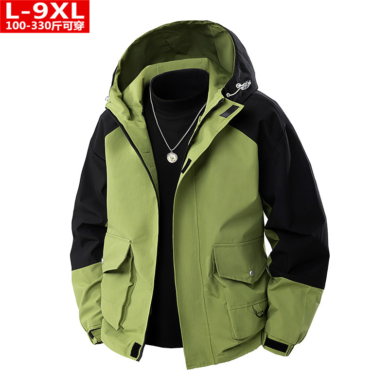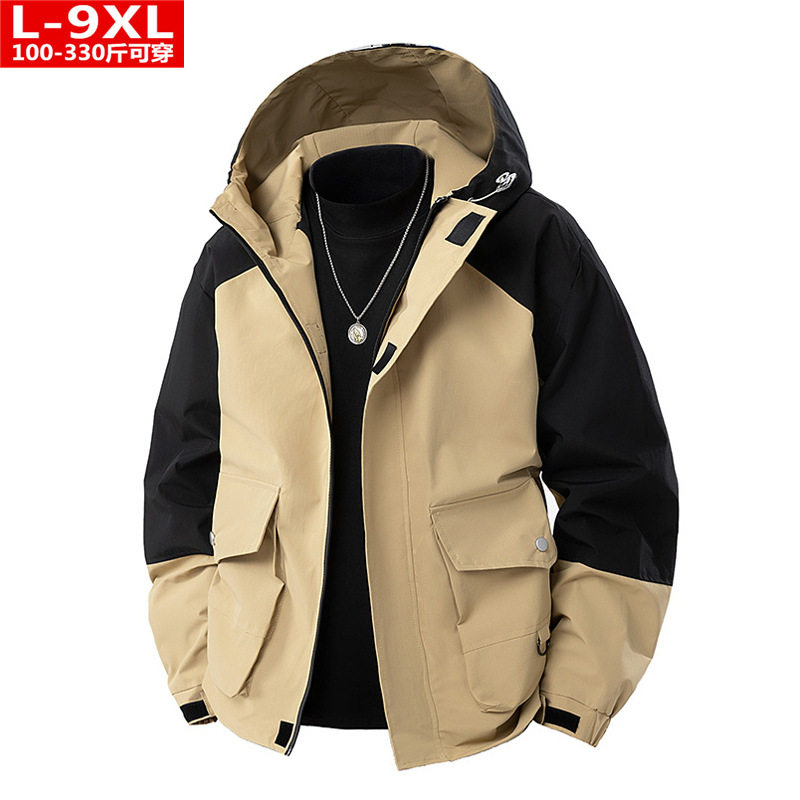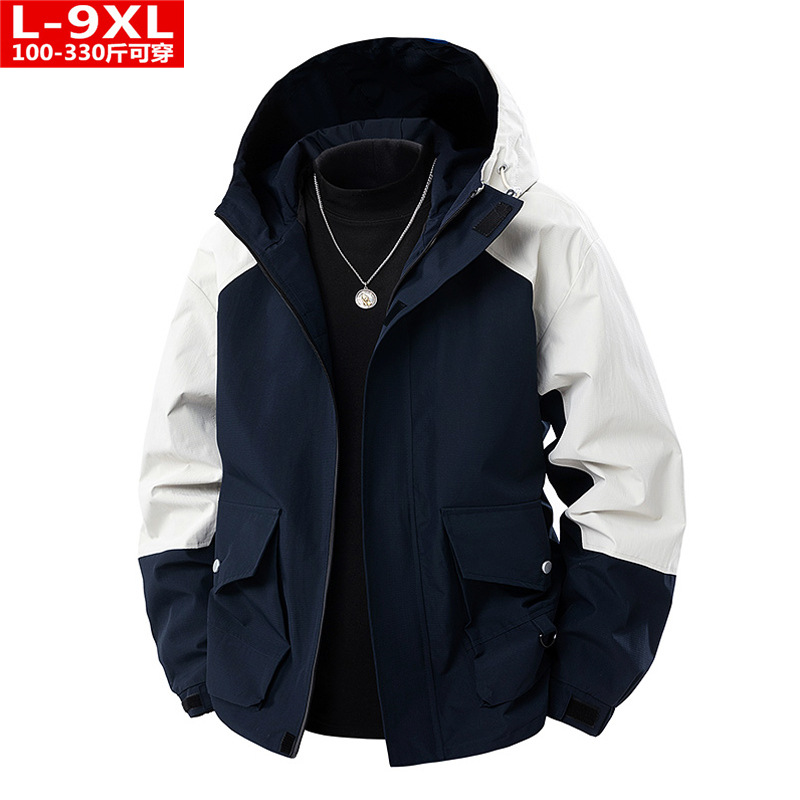 봄과 가을 트렌디 한 홍콩 스타일 남성 컬러 블록 후드 자켓 통통한 남성 플러스 사이즈 느슨한 캐주얼 자켓