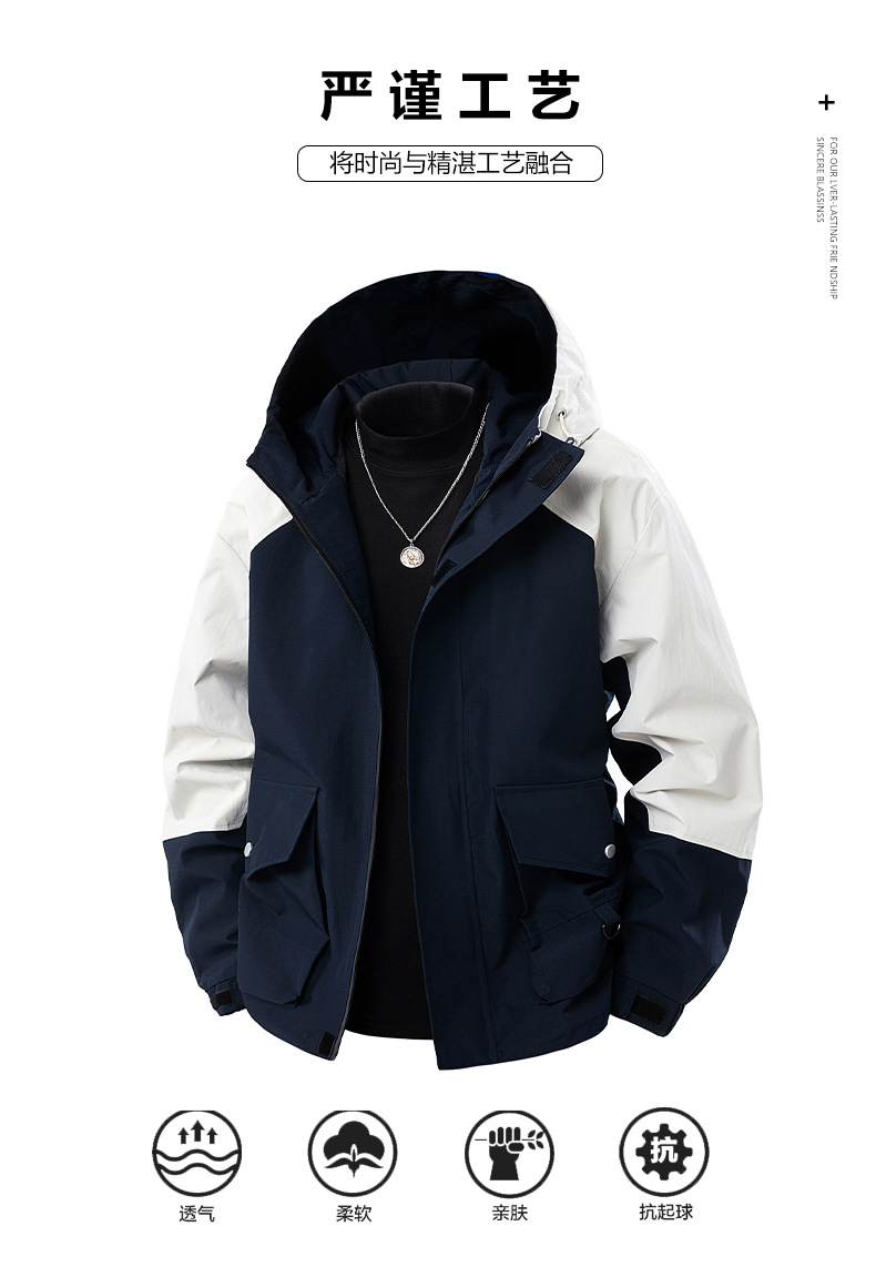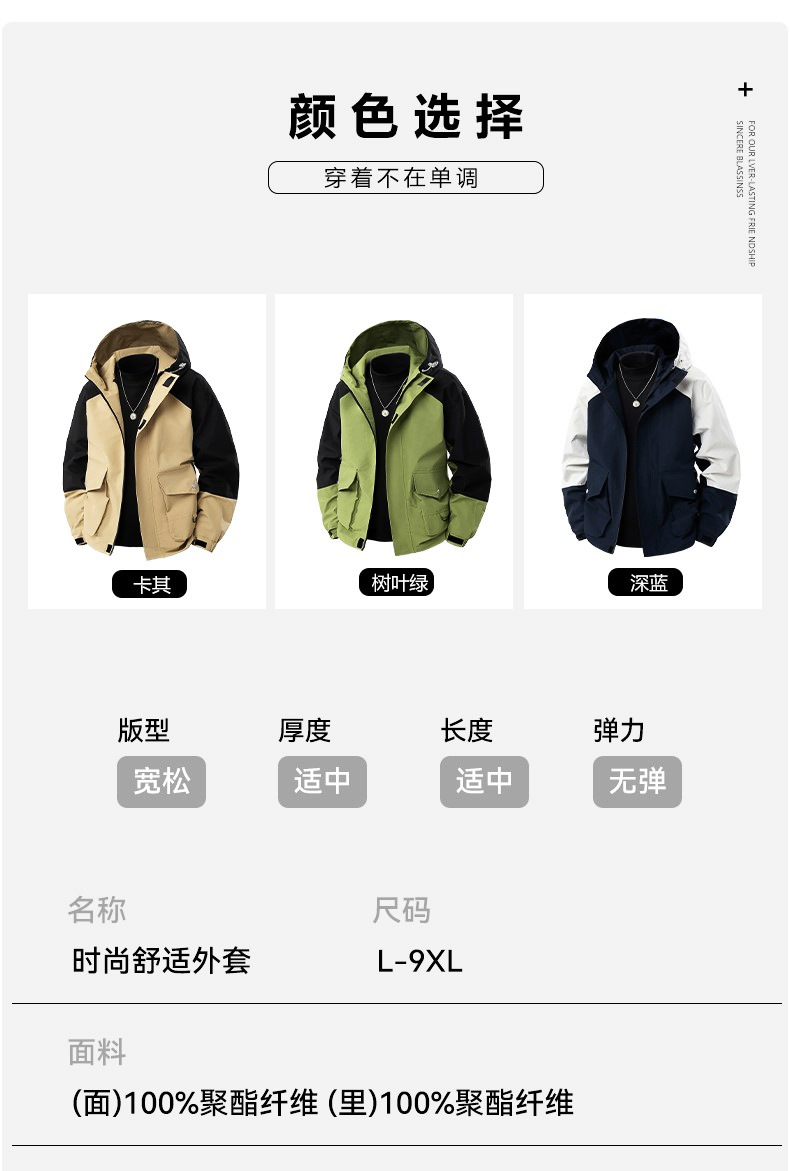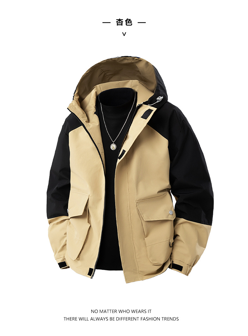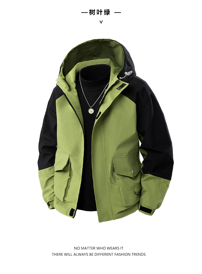 봄과 가을 트렌디 한 홍콩 스타일 남성 컬러 블록 후드 자켓 통통한 남성 플러스 사이즈 느슨한 캐주얼 자켓