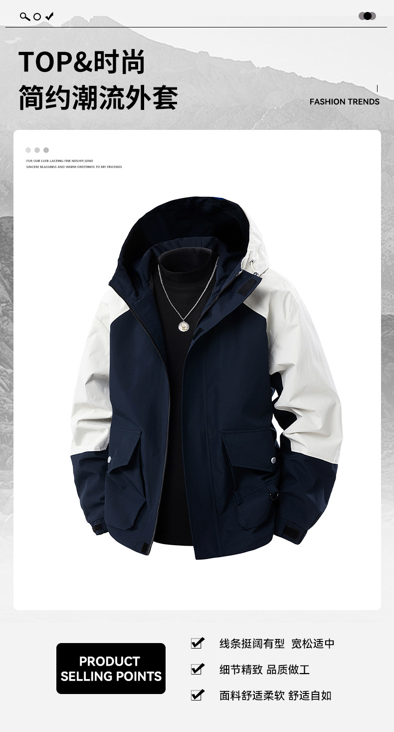봄과 가을 트렌디 한 홍콩 스타일 남성 컬러 블록 후드 자켓 통통한 남성 플러스 사이즈 느슨한 캐주얼 자켓스토어 가기